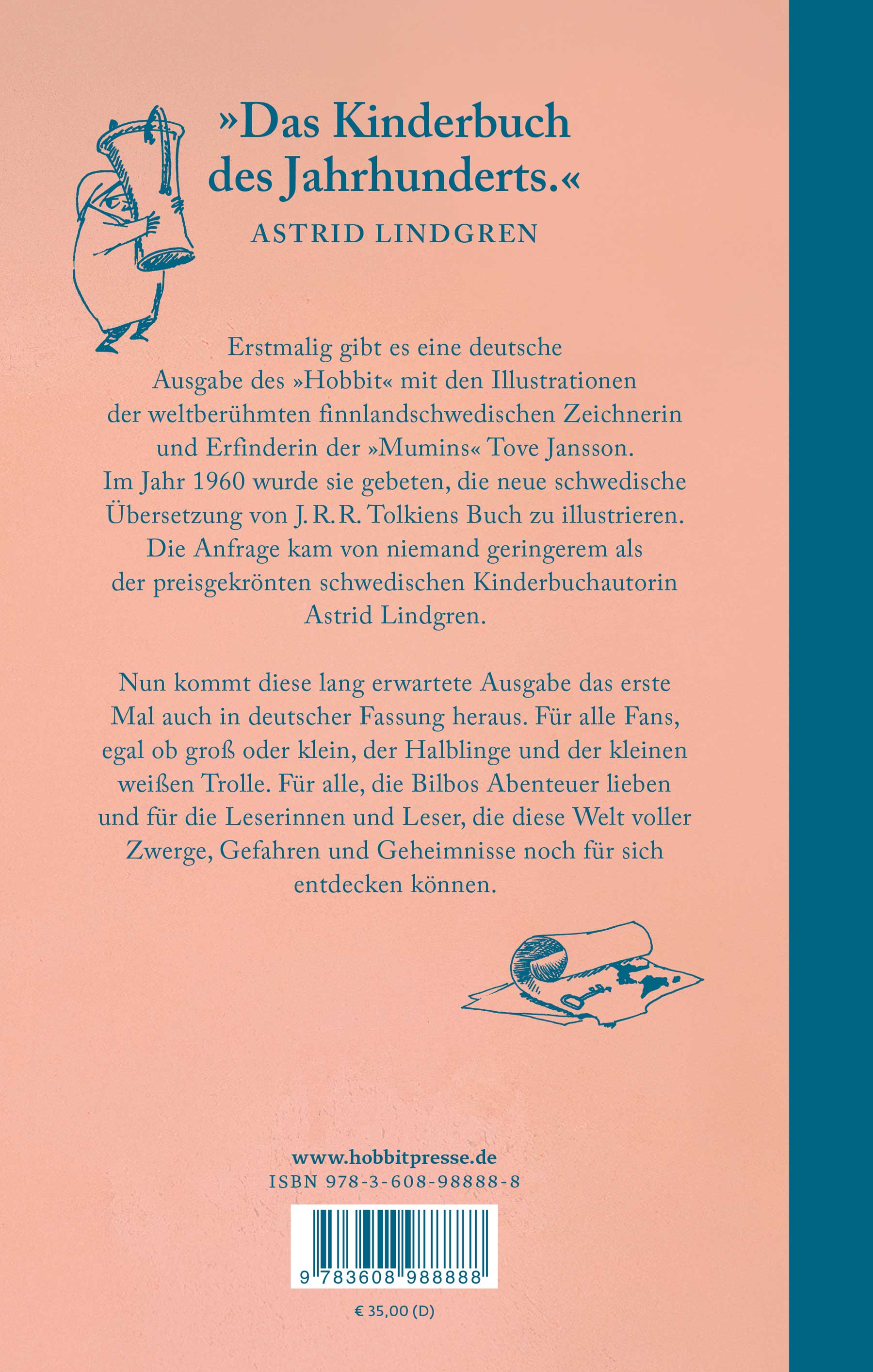 Erstmalig gibt es eine deutsche Ausgabe des »Hobbit« mit den Illustrationen der weltberühmten finnlandschwedischen Zeichnerin Tove Jansson (»Die Mumins«). Für alle Fans, egal ob groß oder klein, der Halblinge und der kleinen weißen Trolle. Und für die Leserinnen und Leser, die diese Welt noch für sich entdecken können.