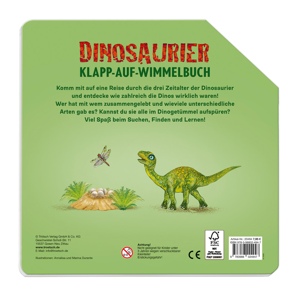 TRÖTSCH - Wimmelbuch Dinosaurier Klapp-auf-Wimmelbuch| Ab 3 Jahren