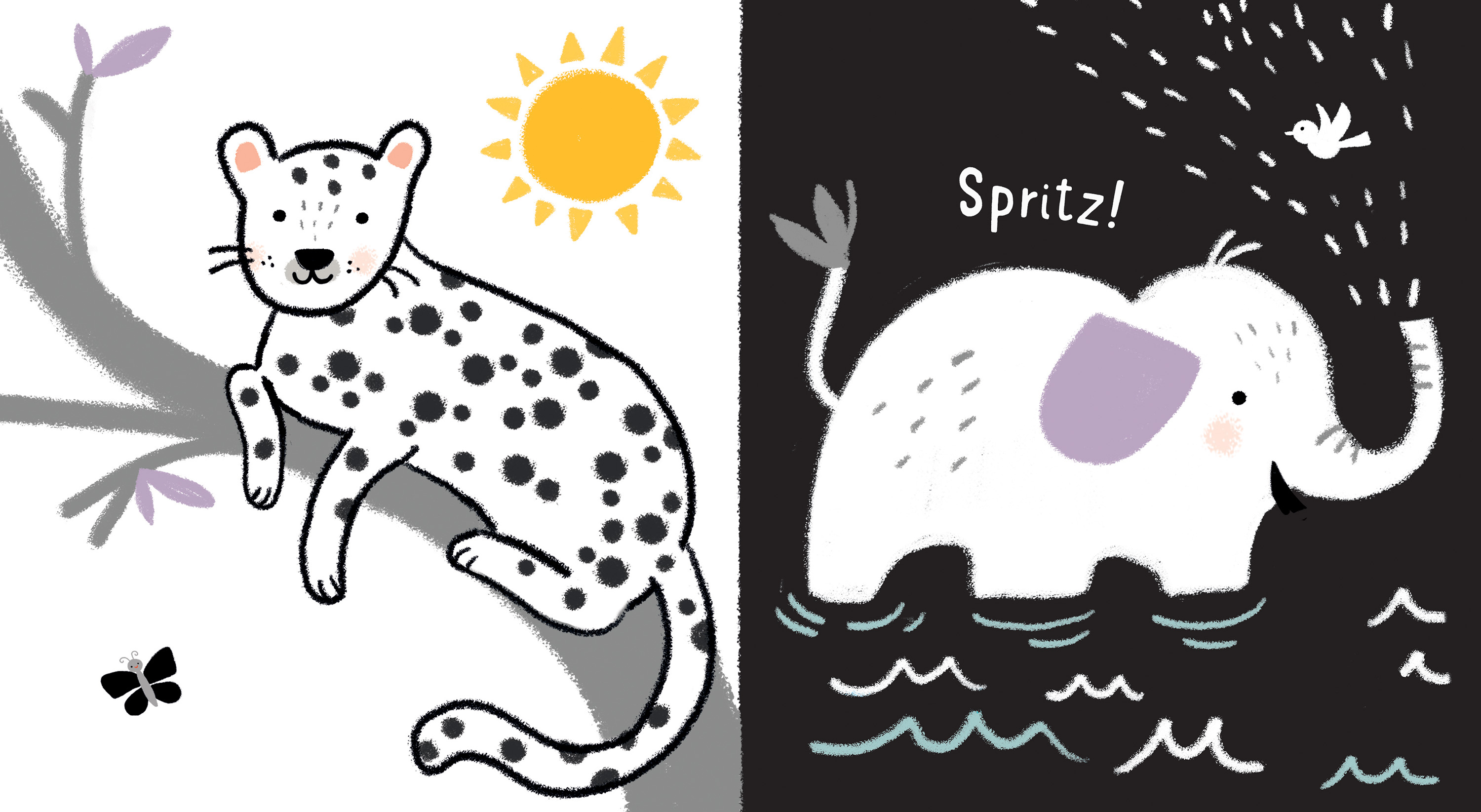 Illustrationen mit starken Schwarz-Weiß-Kontrasten - für die Augen von Babys besonders gut zu erkennen - für Kinder ab 1 Monat