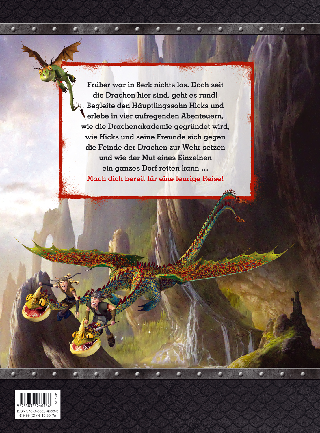 Früher war in Berk nichts los. Doch seit die Drachen hier sind, geht es rund! Begleite den Häuptlingssohn Hicks und erlebe in vier aufregenden Abenteuern, wie die Drachenakademie gegründet wird, wie Hicks und seine Freunde sich gegen die Feinde der Drachen zur Wehr setzen und wie der Mut eines Einzelnen ein ganzes Dorf retten kann ... Mach dich bereit für eine feurige Reise!