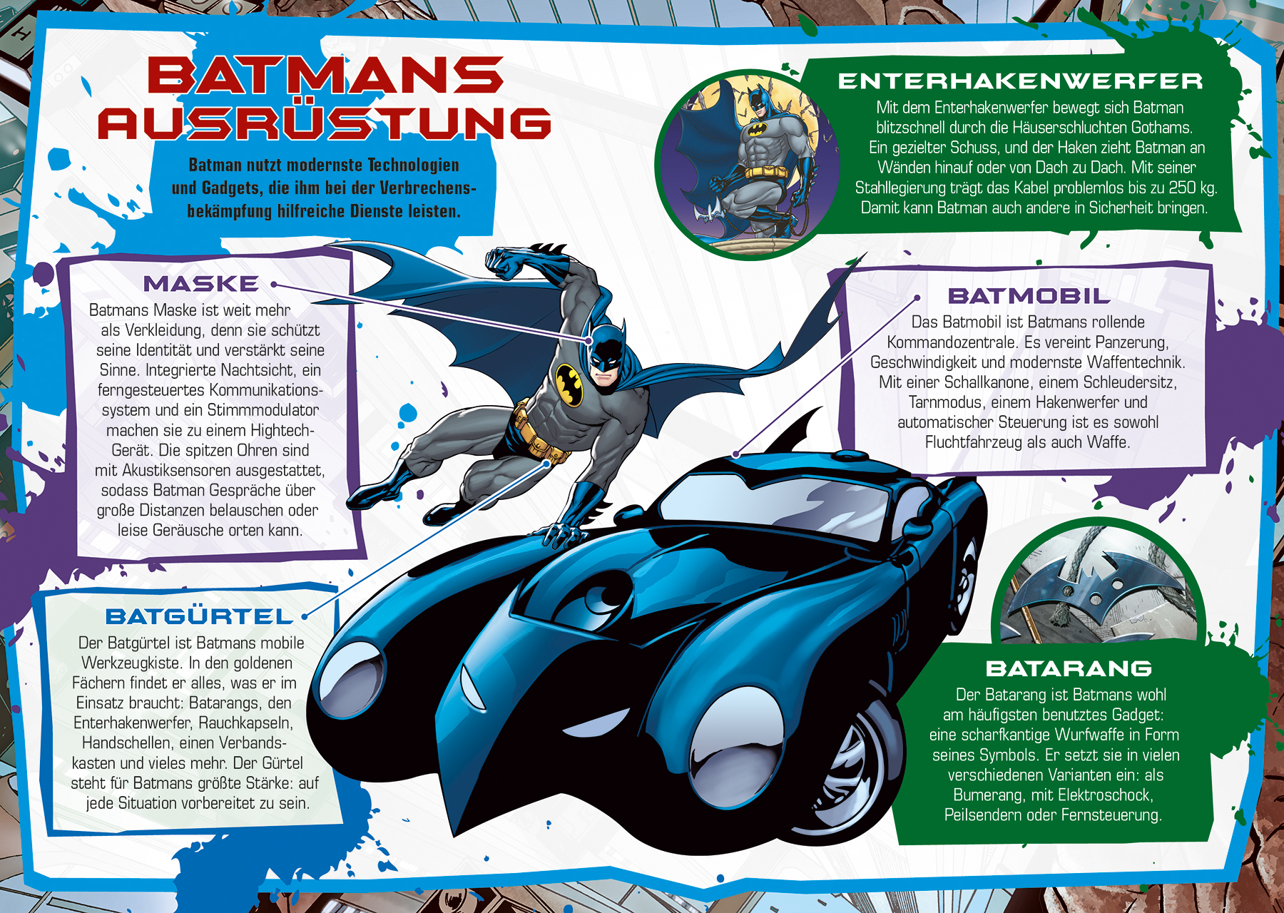 Dieses Freundebuch ist genau das Richtige für echte Batman-Fans! Hier können sich deine besten Freunde eintragen und dir jede Menge über sich verraten. Außerdem erwarten dich spannende Fakten über den Dunklen Ritter und seine fiesesten Gegner, knifflige Quizfragen und coole Tests.
