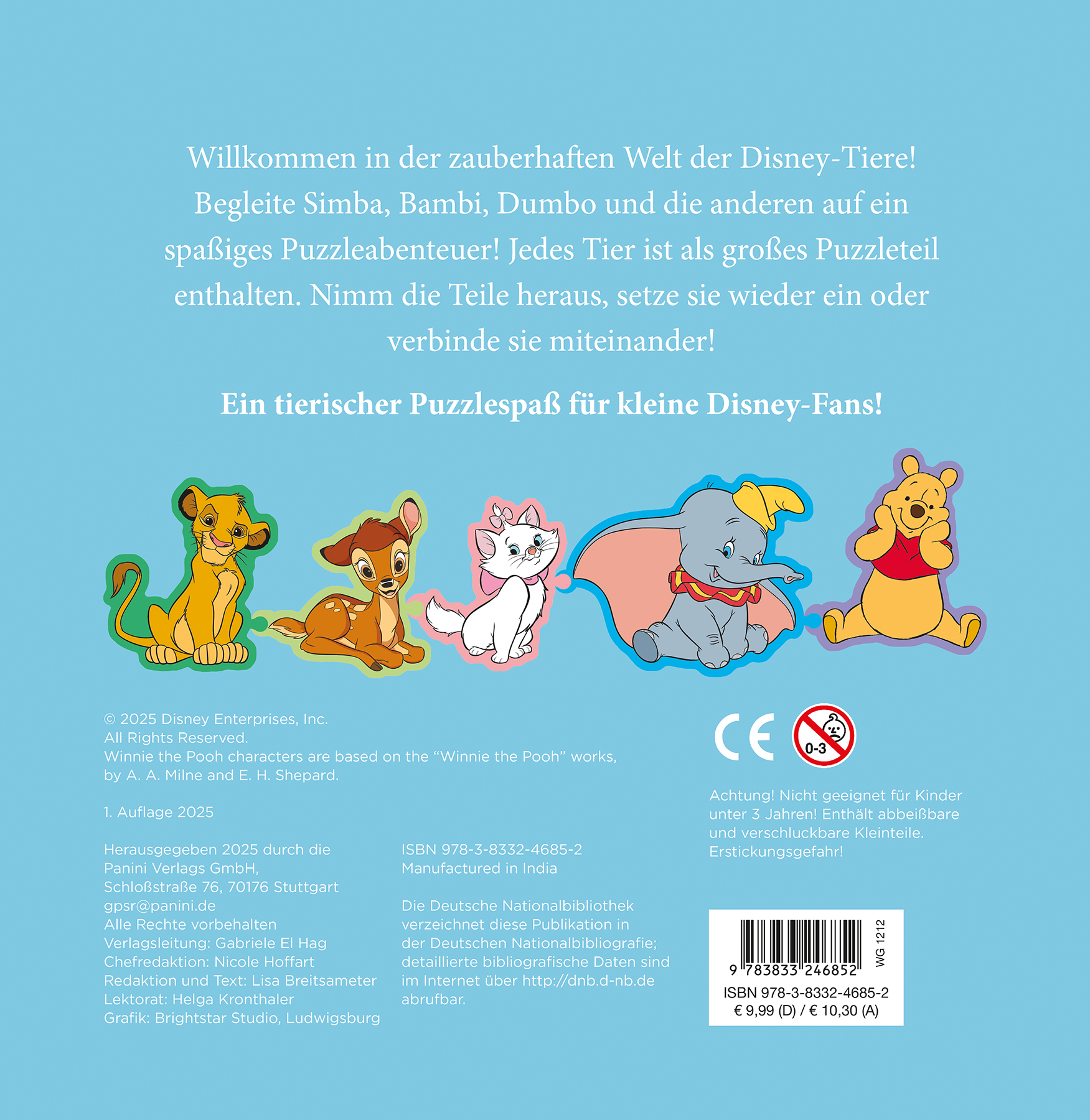 Willkommen in der zauberhaften Welt der Disney-Tiere! Begleite Simba, Bambi, Dumbo und die anderen auf ein spaßiges Puzzleabenteuer! Jedes Tier ist als großes Puzzleteil enthalten. Nimm die Teile heraus, setze sie wieder ein oder verbinde sie miteinander! Ein tierischer Puzzlespaß für kleine Disney-Fans!