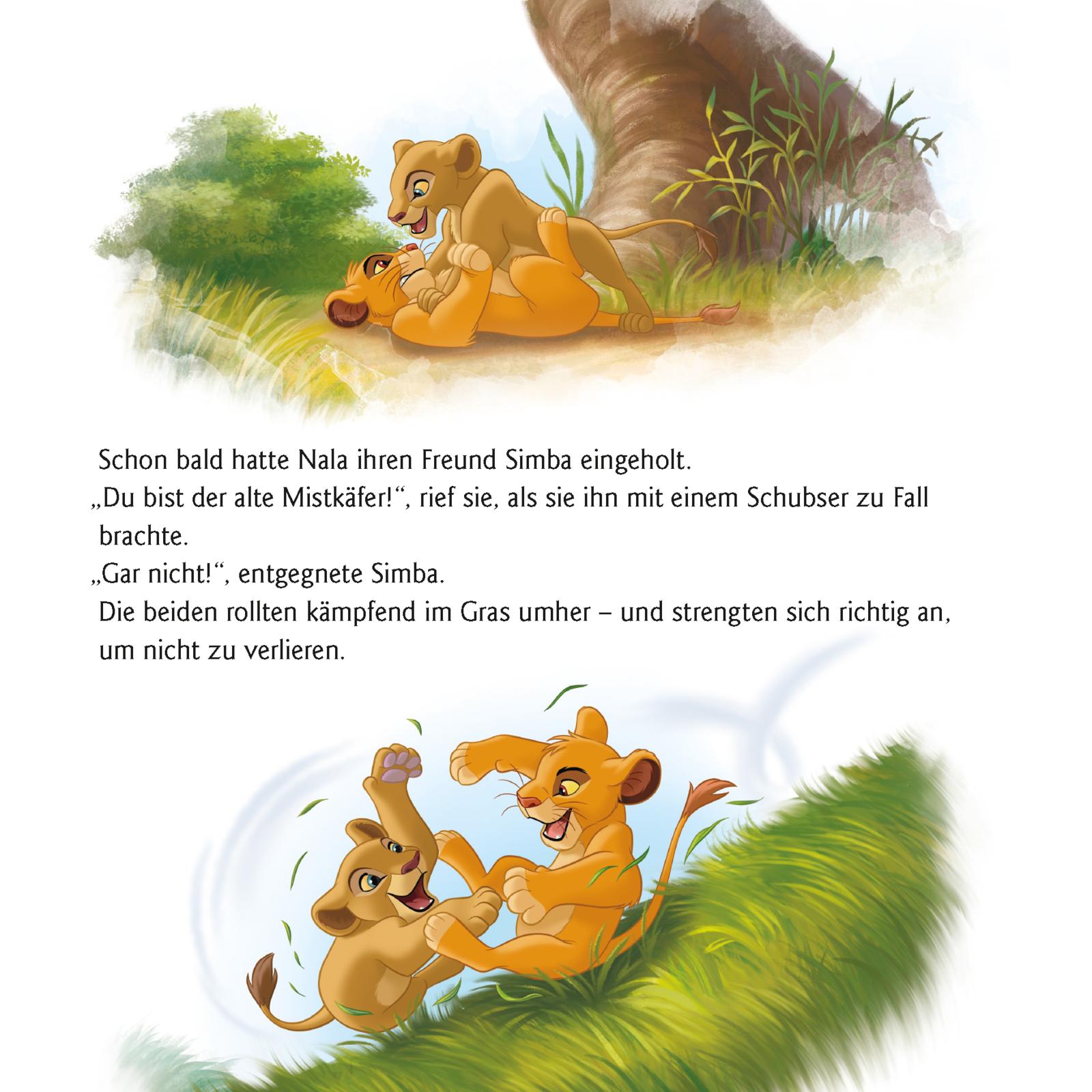 Simba und Nala tollen durch die Savanne und erfinden einen tollen Hindernisparcours - da wollen auch alle anderen Tiere mitspielen! Aber nur so lange, bis Simba und Nala sich streiten, wer von den beiden besser ist. Da haben die anderen Tiere keine Lust mehr. Die beiden kleinen Löwen entdecken, was an einem Spiel das wirklich Wichtige ist ...