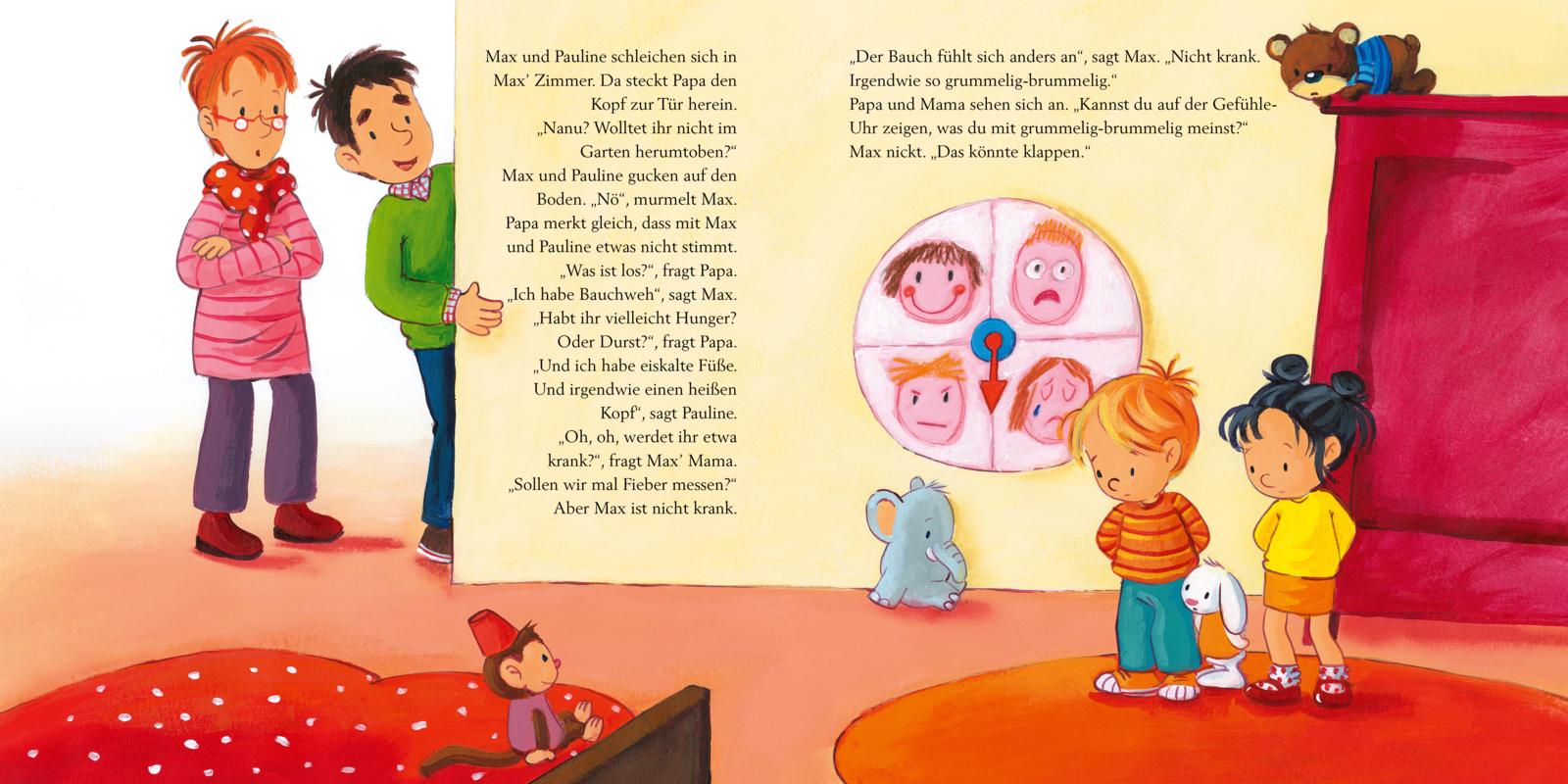 Für Kinder ist es gar nicht einfach, ihre verschiedenen Gefühle zu erkennen. Manchmal erlebt man sogar viele Gefühle auf einmal und ist an einem einzigen Tag fröhlich, wütend, traurig, enttäuscht, ängstlich und glücklich. So ein Gefühle-Durcheinander erlebt auch Max in dieser Geschichte.
