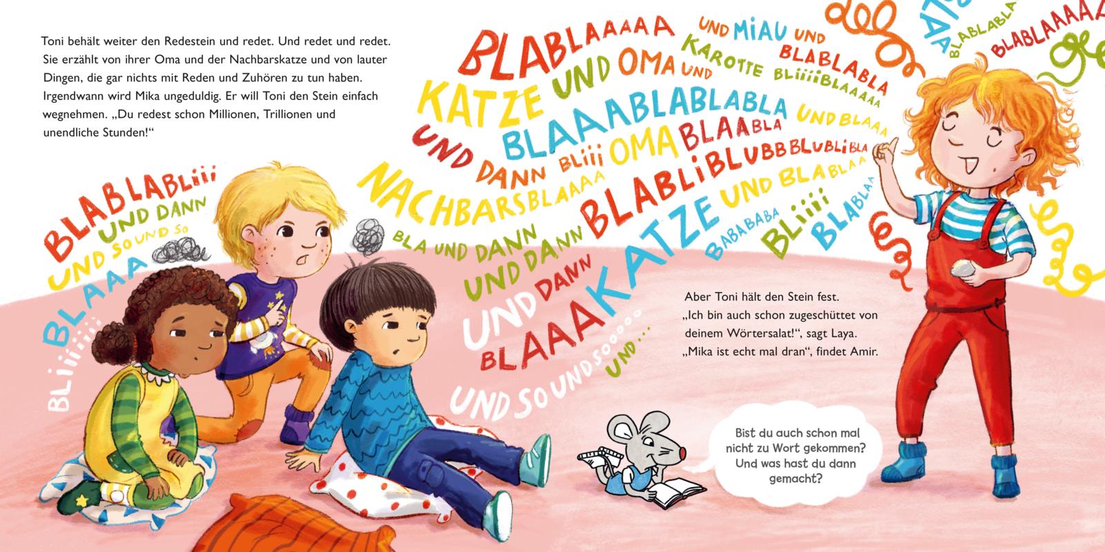 Laya, Mika, Toni und Amir gehen zusammen in den Kindergarten. Was die vier Freunde dort erleben, wie sie einander gut zuhören, sich gegenseitig ausreden lassen und auch selbst zu Wort kommen können - davon erzählt diese Geschichte.