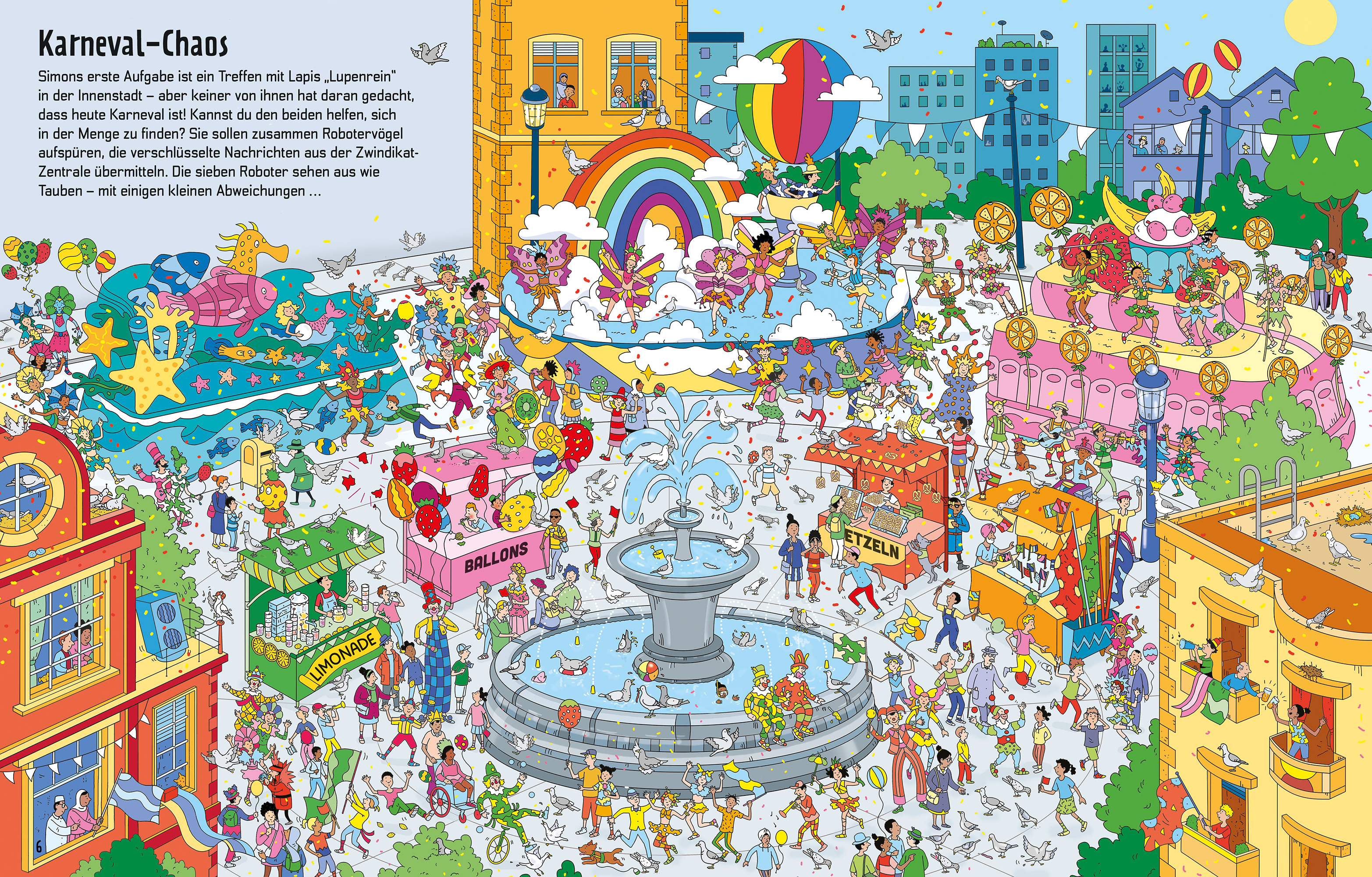 - 12 aufwendig gestaltete Wimmelszenen mit einer Vielzahl an Rätseln und Knobeleien