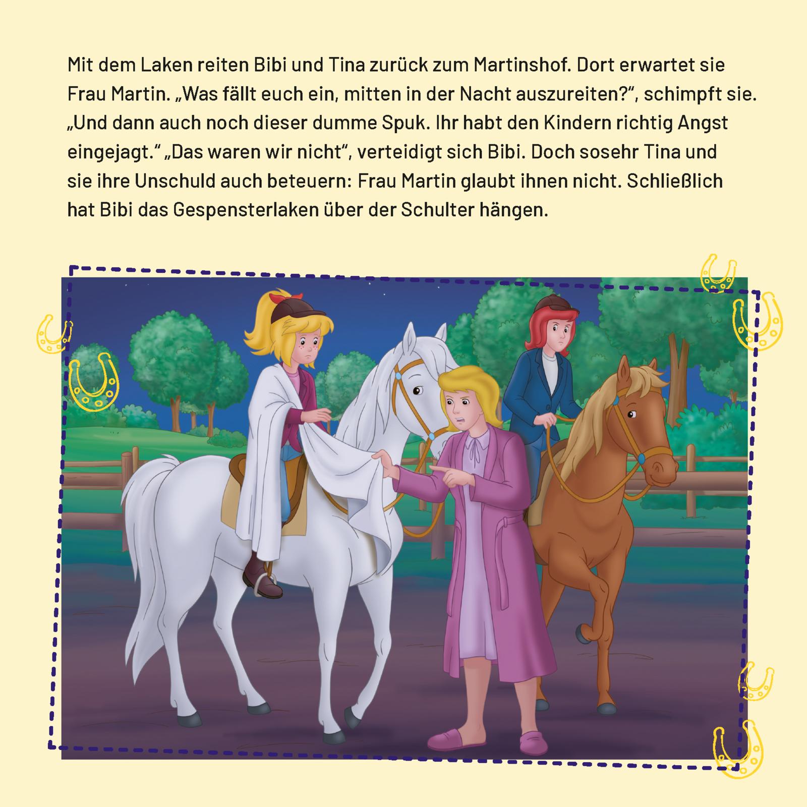 nur ein weißes Bettlaken erbeuten, das der Reiter verliert. Frau Martin bittet Bibi und Tina herauszufinden, wer der geheimnisvolle Unbekannte ist.
