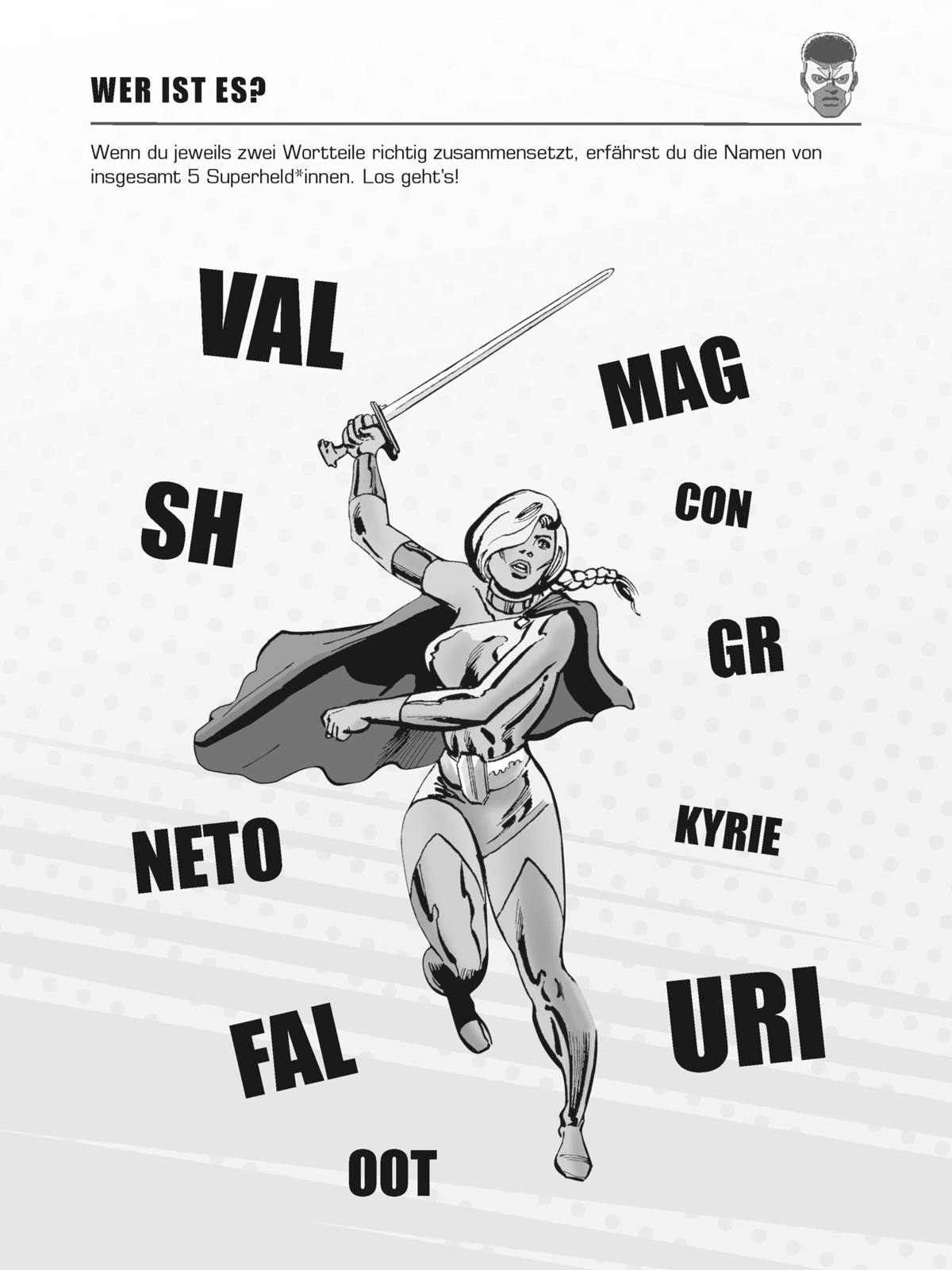 Dieser Beschäftigungsblock enthält viele kniffelige Logik-Rätsel, Denkspiele, Rechenaufgaben, Buchstabengitter und vieles mehr. Die MARVEL-Held*innen führen dabei durch die Aufgaben.