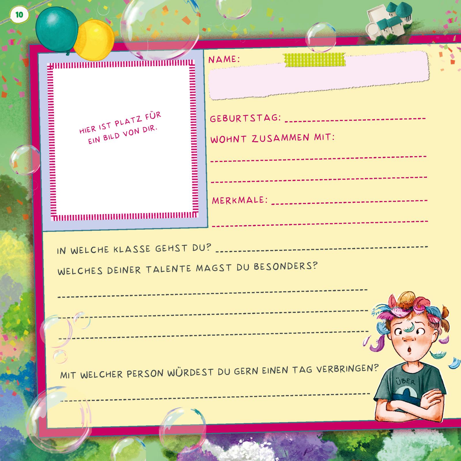 In dieses Album können sich alle Kinder eintragen, lustige Fragen beantworten, malen, kleben und sogar rätseln! Das Freundebuch bietet dabei Platz für bis zu 30 Freundinnen und Freunde. Mit Lesezeichen, Stundenplan, Talente-Quiz und vielem mehr.