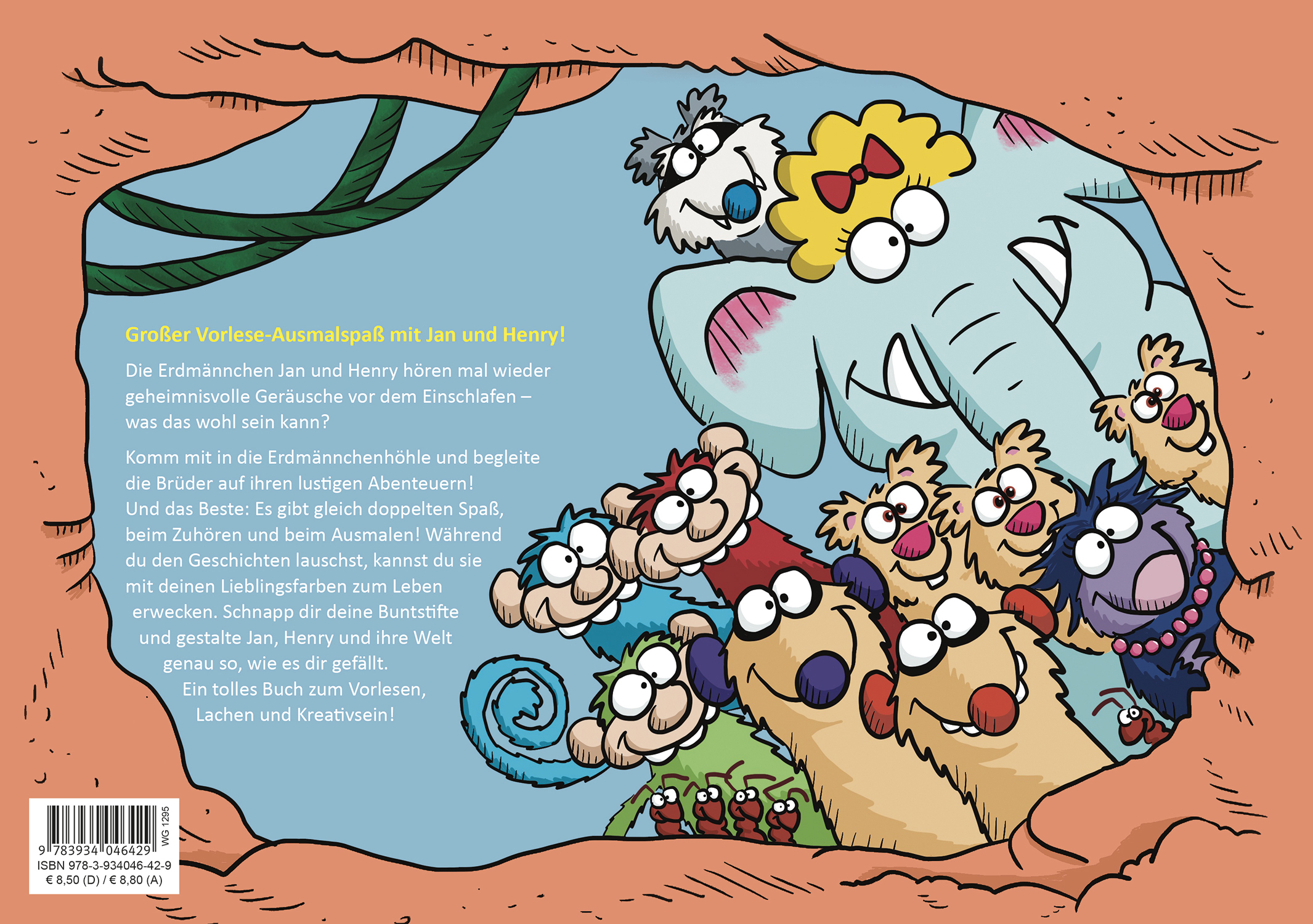 Großer Vorlese-Ausmalspaß mit Jan und Henry!Die Erdmännchen Jan und Henry hören mal wieder geheimnisvolle Geräusche vor dem Einschlafen - was das wohl sein kann? Komm mit in die Erdmännchenhöhle und begleite die Brüder auf ihren lustigen Abenteuern! Und das Beste: Es gibt gleich doppelten Spaß, beim Zuhören und beim Ausmalen! Während du den Geschichten lauschst, kannst du sie mit deinen Lieblingsfarben zum Leben erwecken. Schnapp dir deine Buntstifte und gestalte Jan, Henry und ihre Welt genau so, wie es dir gefällt.Ein tolles Buch zum Vorlesen, Lachen und Kreativsein!