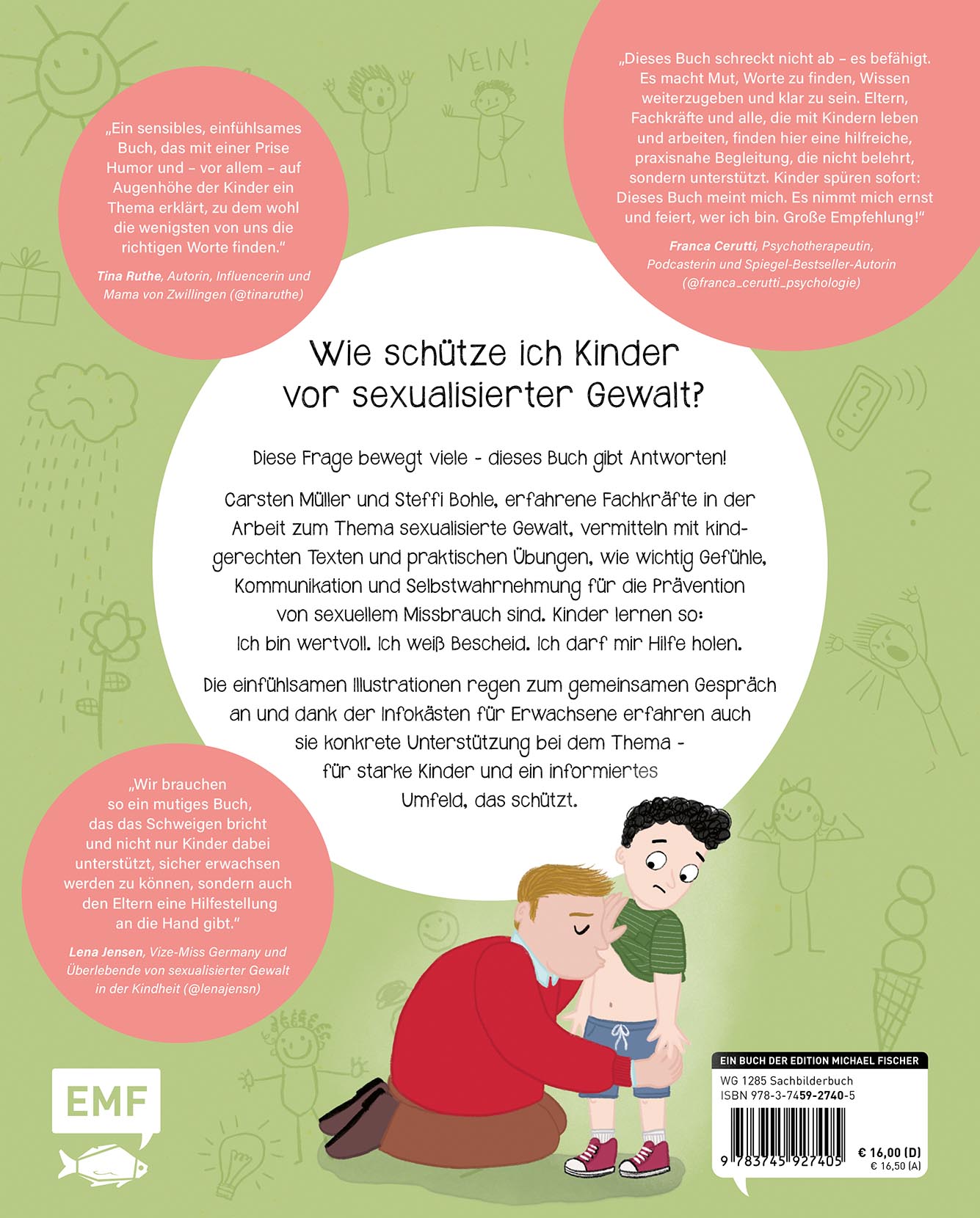 "Jetzt mal ehrlich?!" ist ein mutiges und klares Buch - für Kinder, für ihre Bezugsmenschen und für das, was wir alle brauchen: Sicherheit, Vertrauen und Selbstbestimmung. Steffi Bohle und Carsten Müller ist etwas Seltenes gelungen: Sie sprechen über sexualisierte Gewalt an Kindern - ein schweres, oft sprachlos machendes Thema - in einer Form, die stärkt, ins Handeln bringt und klüger macht. Dieses Buch schreckt nicht ab - es befähigt. Es macht Mut, Worte zu finden, Wissen weiterzugeben und klar zu sein. Eltern, Fachkräfte und alle, die mit Kindern leben und arbeiten, finden hier eine hilfreiche, praxisnahe Begleitung, die nicht belehrt, sondern unterstützt. Kinder spüren sofort: Dieses Buch meint mich. Es nimmt mich ernst und feiert, wer ich bin. Große Empfehlung!- Franca Cerutti, Psychotherapeutin, Podcasterin und Spiegel-Bestseller-Autorin (@franca_cerutti_psychologie)