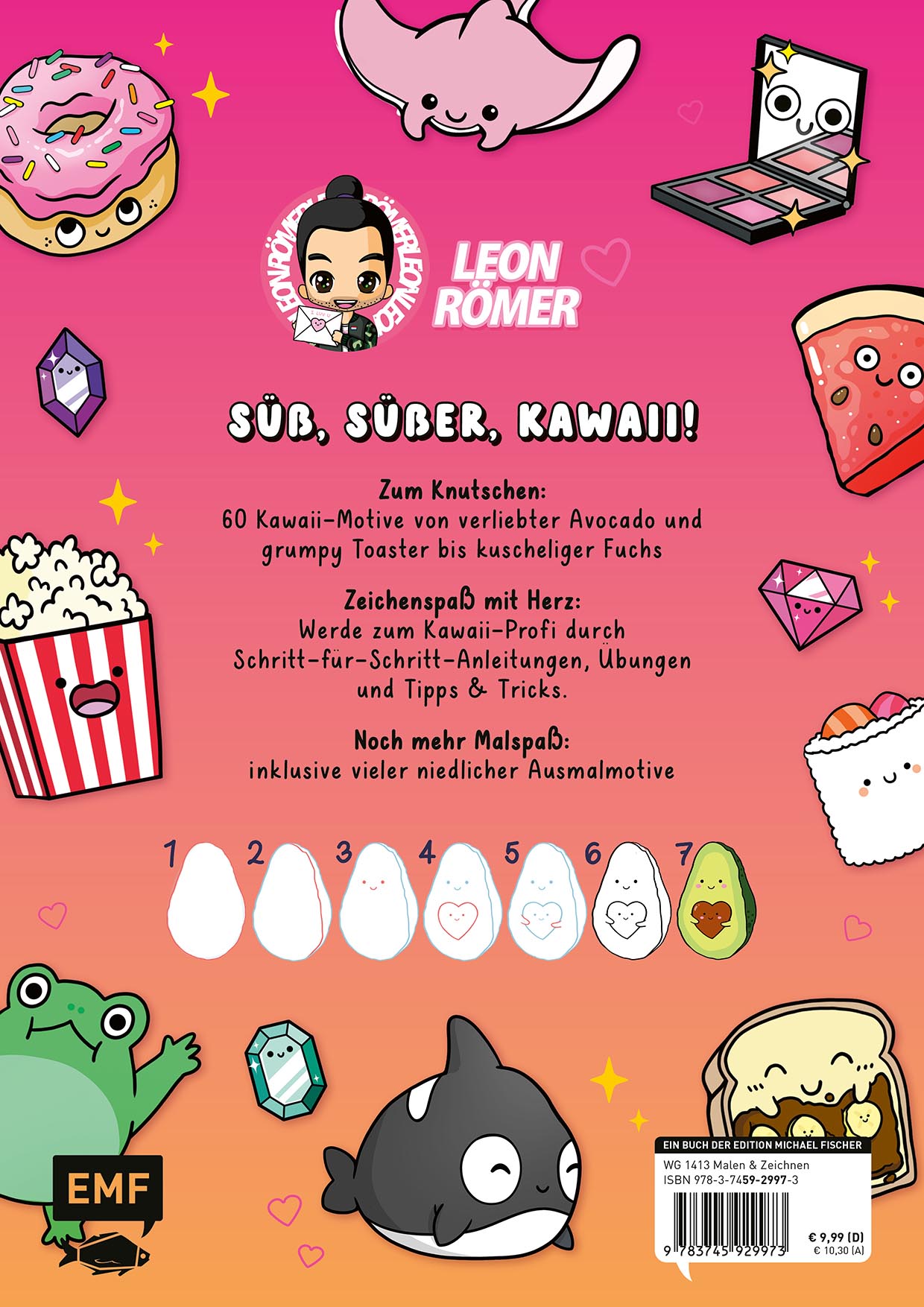 Lerne in einfachen Steps, die süßesten Gegenstände und umwerfend niedliches Essen zu zeichnen und tauche ein in die bunte Welt der Kawaii-Motive! Neben den Schritt-für-Schritt-Anleitungen teilt Leon Römer seine besten Zeichenübungen, sowie unzählige Tipps und Tricks zum Zeichnen und Ausmalen seiner niedlichen Kawaii-Welt. Ob für Kawaii-Fans oder für alle, die sich eine süße Auszeit gönnen möchten - die zuckersüßen Motive bringen Farbe und Freude in deinen Alltag!
