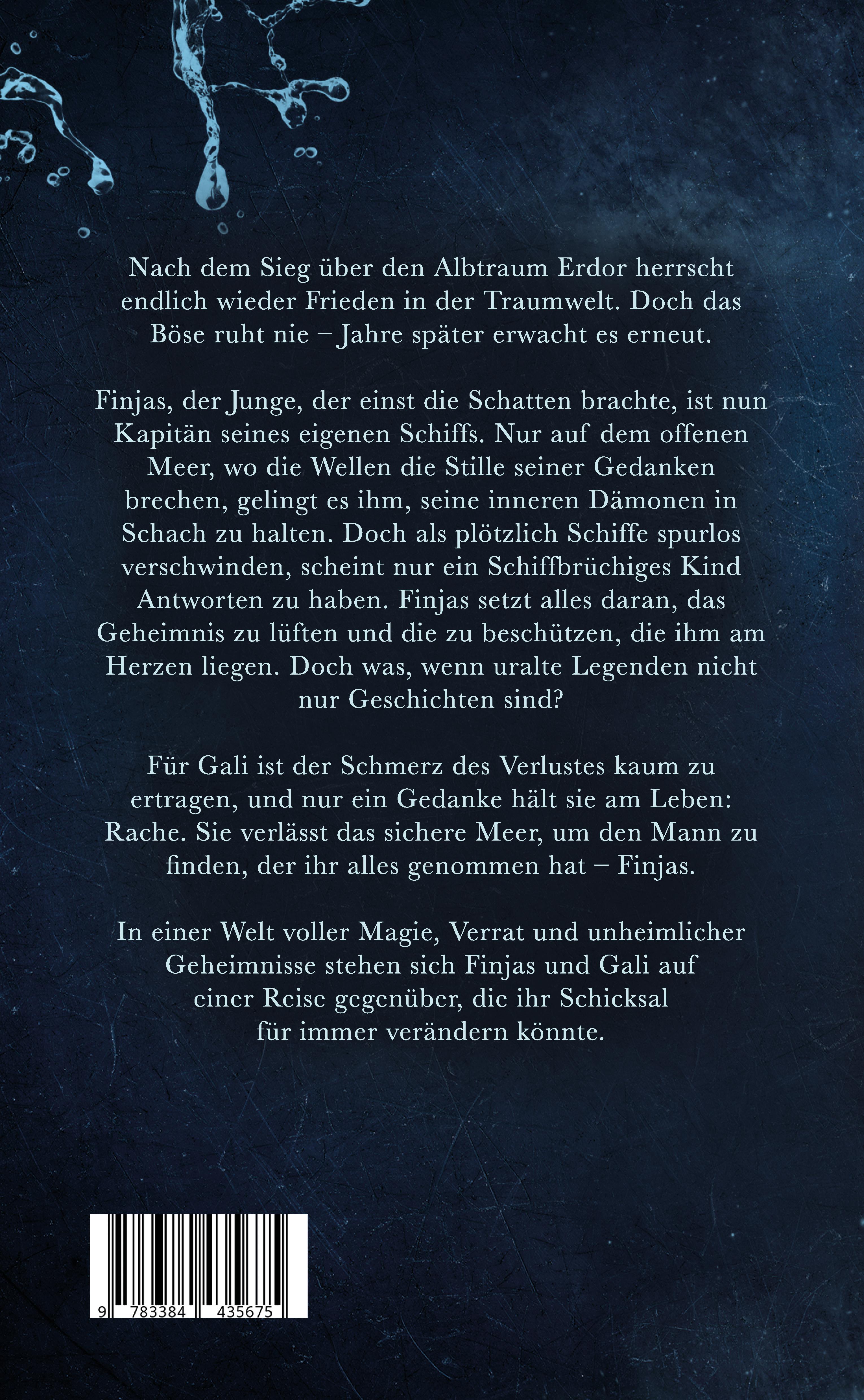 Nach dem Sieg über den Albtraum Erdor herrscht endlich wieder Frieden in der Traumwelt. Doch das Böse ruht nie - Jahre später erwacht es erneut.Finjas, der Junge, der einst die Schatten brachte, ist nun Kapitän seines eigenen Schiffs. Nur auf dem offenen Meer, wo die Wellen die Stille seiner Gedanken brechen, gelingt es ihm, seine inneren Dämonen in Schach zu halten. Doch als plötzlich Schiffe spurlos verschwinden, scheint nur ein Schiffbrüchiges Kind Antworten zu haben. Finjas setzt alles daran, das Geheimnis zu lüften und die zu beschützen, die ihm am Herzen liegen. Doch was wenn uralte Legenden nicht nur Geschichten sind?Für Gali ist der Schmerz des Verlustes kaum zu ertragen, und nur ein Gedanke hält sie am Leben: Rache. Sie verlässt das sichere Meer, um den Mann zu finden, der ihr alles genommen hat - Finjas.In einer Welt voller Magie, Verrat und unheimlicher Geheimnisse stehen sich Finjas und Gali auf einer Reise gegenüber, die ihr Schicksal für immer verändern könnte.