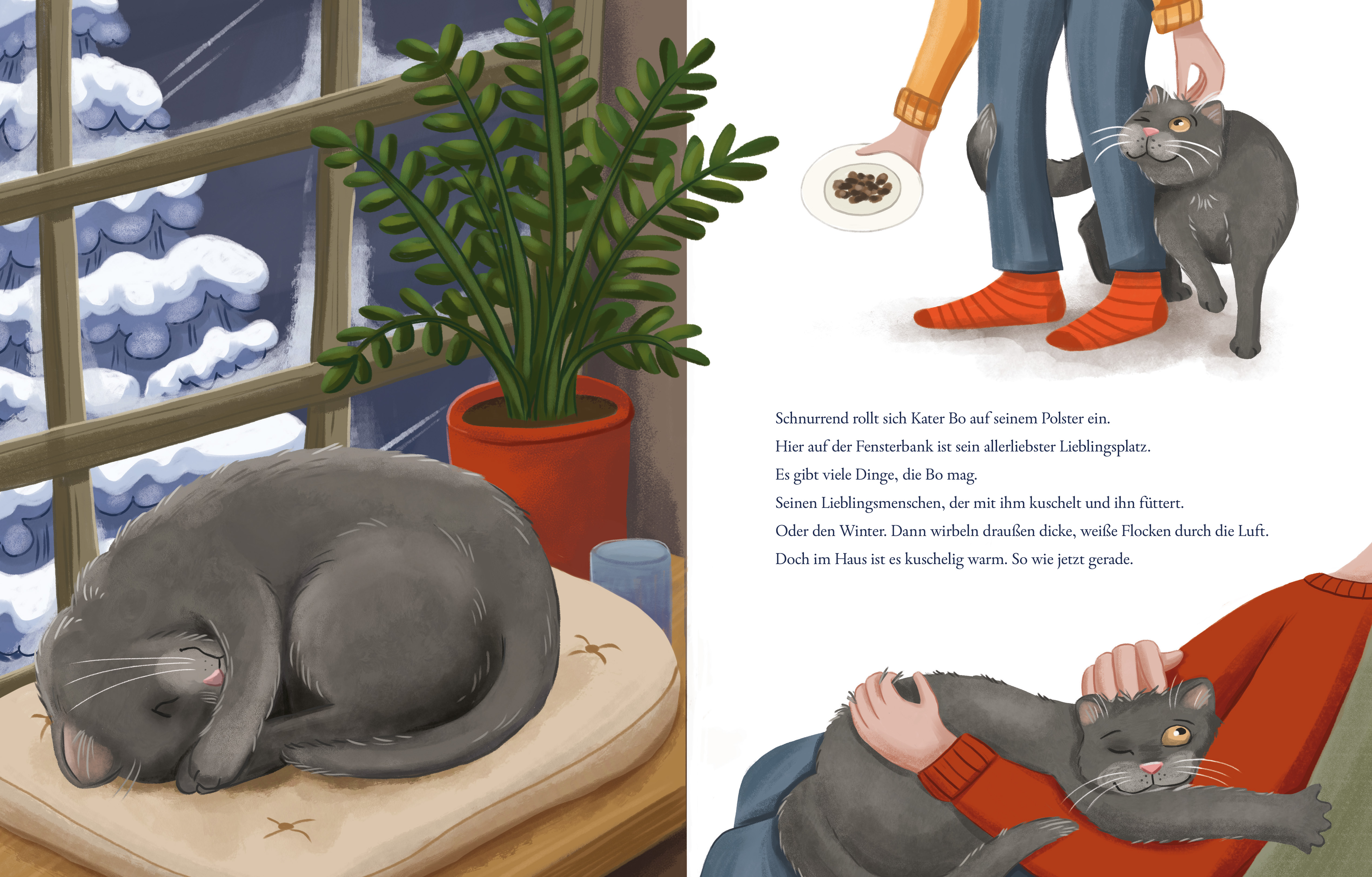 Kater Bo genießt ein gemütliches Leben mit seinem Lieblingsmenschen. Als dann eines Tages die kleine Katze Flöckchen bei ihnen einzieht, scheint sich alles auf den Kopf zu stellen.