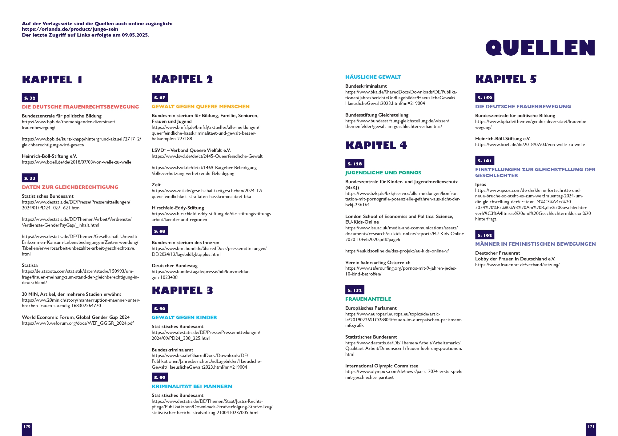 Masato, Juri, Feti, Anton und Rosa sind Jugendliche, die in dieselbe Klasse gehen. In fünf Geschichten gehen sie drängenden Fragen auf den Grund: u.a. über Beziehungen untereinander, über männliche Privilegien, über Sexismus im Alltag, über klassische Rollenbilder. Das Buch liefert Denkanstöße für eine gleich berechtigtere Gesellschaft , in der alle ihre Gefühle frei ausleben können, in der die Beziehungen zwischen Männern und Frauen friedlicher sind und in der Geschlechter stereotype keinenPlatz mehr haben.
