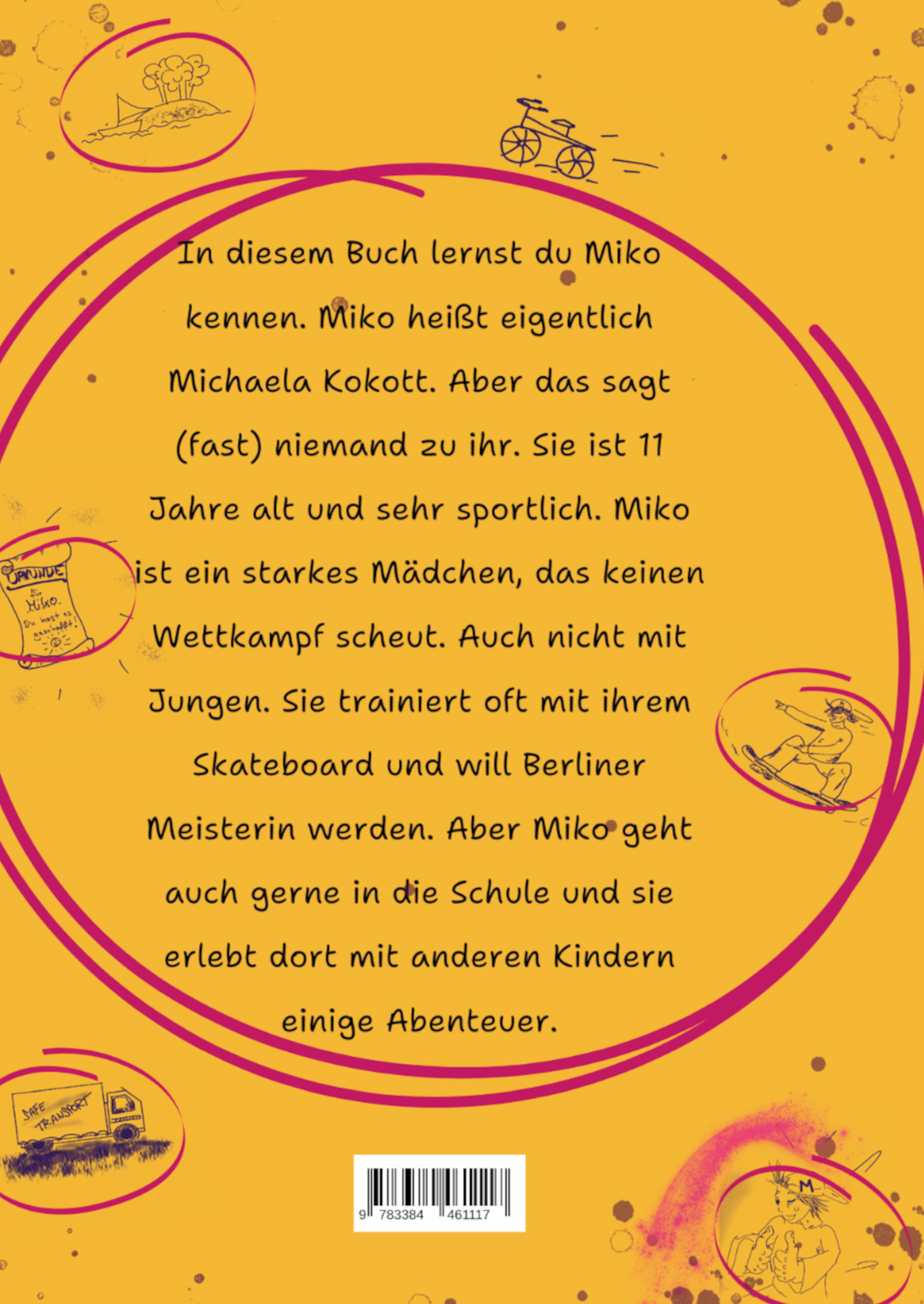 In diesem Buch werden Erlebnisse und Abenteuer von Miko erzählt. Miko ist ein elfjähriges Mädchen. Sie hat zwei jüngere Geschwister und trainiert jeden Tag mit ihrem Skateboard Figuren und Kunststücke. Miko will Berliner Meisterin in ihrer Altersklasse im Skaten werden und wird durch ihr Training immer besser. Sie geht aber auch gerne zur Schule, wenngleich sie sich auf die Sportstunden mehr freut als auf den Mathematikunterricht. Aber Miko ist auch an vielen anderen Dingen interessiert. Sie macht gerne Musik, geht oft schwimmen und trifft sich gerne mit Freundinnen. Sie unterstützt auch Nachbarn oder alte Menschen, die Hilfe benötigen.Als ihre Eltern verkünden, dass sie umziehen und den Stadtbezirk wechseln müssen, wird sie etwas aus der Bahn geworfen. Sie muss sich nun neu orientieren: Eine neue Schule, neue Freunde, eine neue Umgebung, neue Trainingsplätze. Wie wird das werden? Wird Miko die Umstellung gelingen?