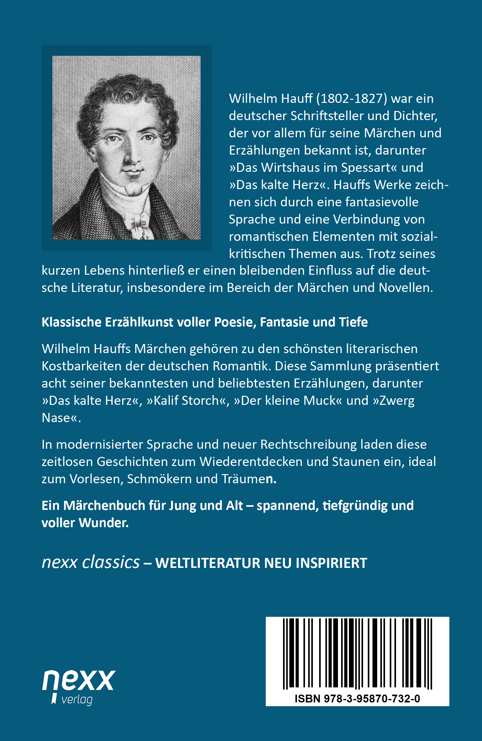 Wilhelm Hauff (1802–1827) war ein deutscher Schriftsteller der Romantik. Trotz seines frühen Todes schuf er unvergessliche Märchen, die bis heute zu den Klassikern der Weltliteratur zählen. Seine kunstvoll erzählten Geschichten verbinden Fantasie mit Poesie und zeitloser Tiefe.