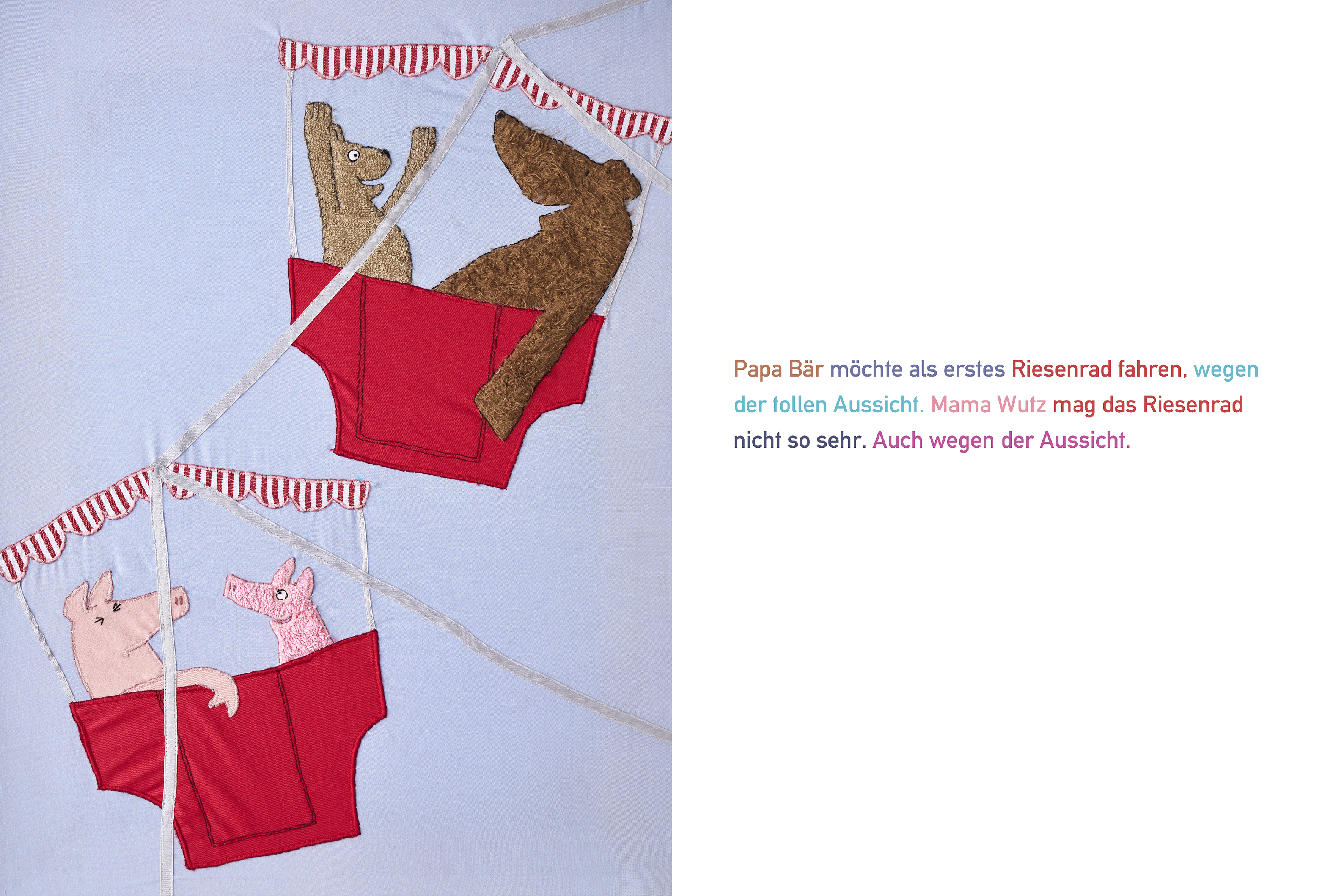 | Schlagworte | 3 generationen • altersübergreifend • Ausflug • Autoscooter • Bär • Basteln • Dult • Eltern • Familie • Freizeit • Geschwister • Handarbeit • Jahrmarkt • Karussell • Kinder • Kirmes • Kleinkindalter • Nähbilderbuch • Nähen • Patchworkfamilie • Phantasie • Rummel • Schiffschaukel • Schwein • Sticken • Stoff • Volksfest • Vorlesebuch |