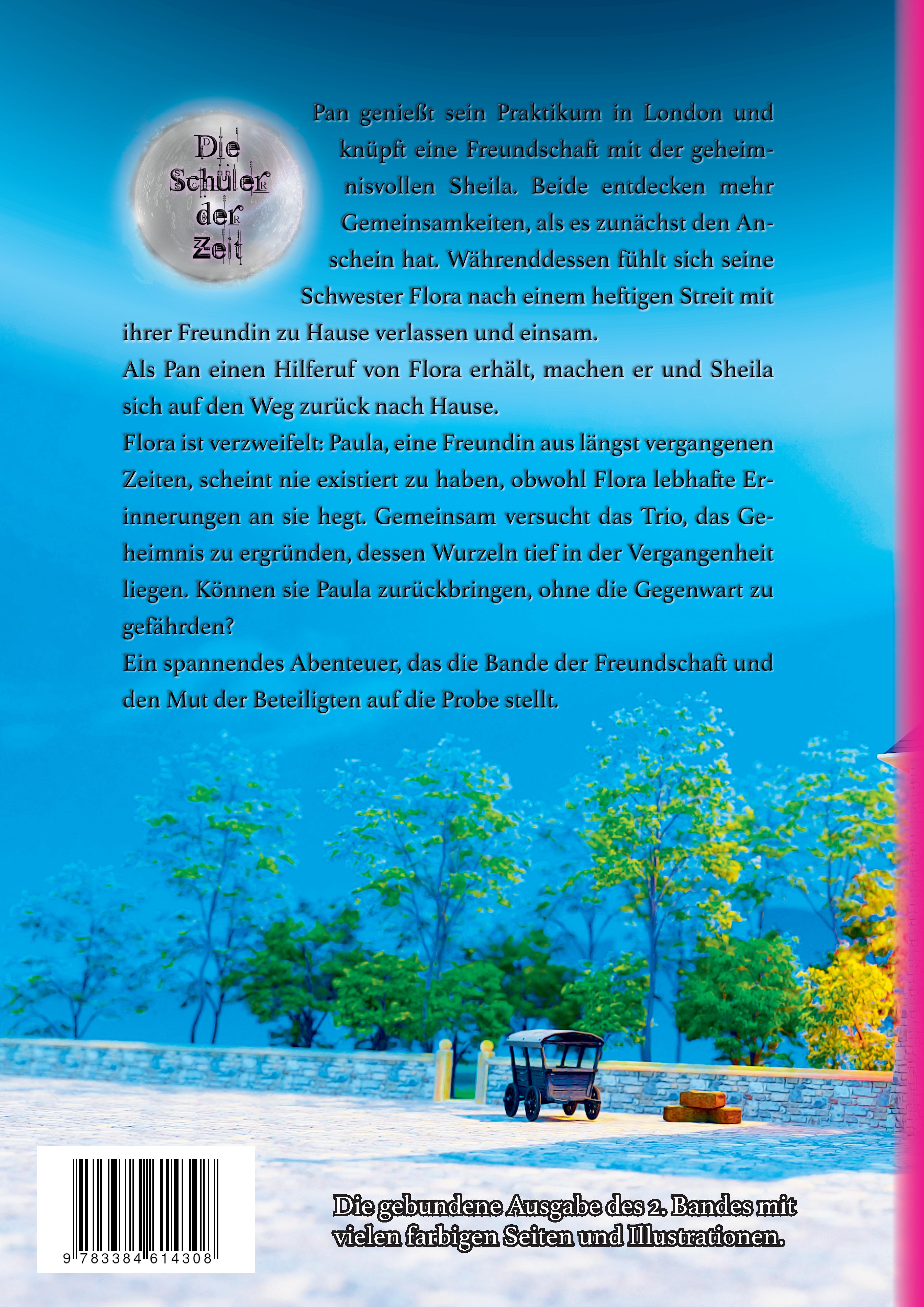 Die Geschwister Flora und Pan sind außergewöhnlich. Nicht nur, dass die Teenager schon seit Jahrhunderten leben, sie besitzen auch ganz besondere Kräfte. Sie können die Vergangenheit und damit die Gegenwart verändern, indem sie sich Nachrichten durch die Zeit an ihre früheren Ichs schicken.Im zweiten Teil der Zeitreisegeschichte genießt Pan sein Praktikum in London und knüpft eine Freundschaft mit der geheimnisvollen Sheila. Beide entdecken mehr Gemeinsamkeiten, als es zunächst den Anschein hat. Währenddessen fühlt sich seine Schwester Flora nach einem heftigen Streit mit ihrer Freundin zu Hause verlassen und einsam.Als Pan einen Hilferuf von Flora erhält, machen er und Sheila sich auf den Weg zurück nach Hause.Flora ist verzweifelt: Paula, eine Freundin aus längst vergangenen Zeiten, scheint nie existiert zu haben, obwohl Flora lebhafte Erinnerungen an sie hegt. Gemeinsam versucht das Trio, das Geheimnis zu ergründen, dessen Wurzeln tief in der Vergangenheit liegen. Können sie Paula zurückbringen, ohne die Gegenwart zu gefährden?Ein spannendes Abenteuer, das die Bande der Freundschaft und den Mut der Beteiligten auf die Probe stellt.+++ Die Softcover-Ausgabe enthält monochrome, die gebundene Ausgabe farbige Illustrationen.+++ Der erste Band "Die Schüler der Zeit - Das Haus" ist als Taschenbuch (ISBN 978-3756529414), gebundene Ausgabe (ISBN 978-3756535835) und eBook (ISBN 978-3756530243) erhältlich.+++ Mehr Informationen unter: https://die-schueler-der-zeit.de