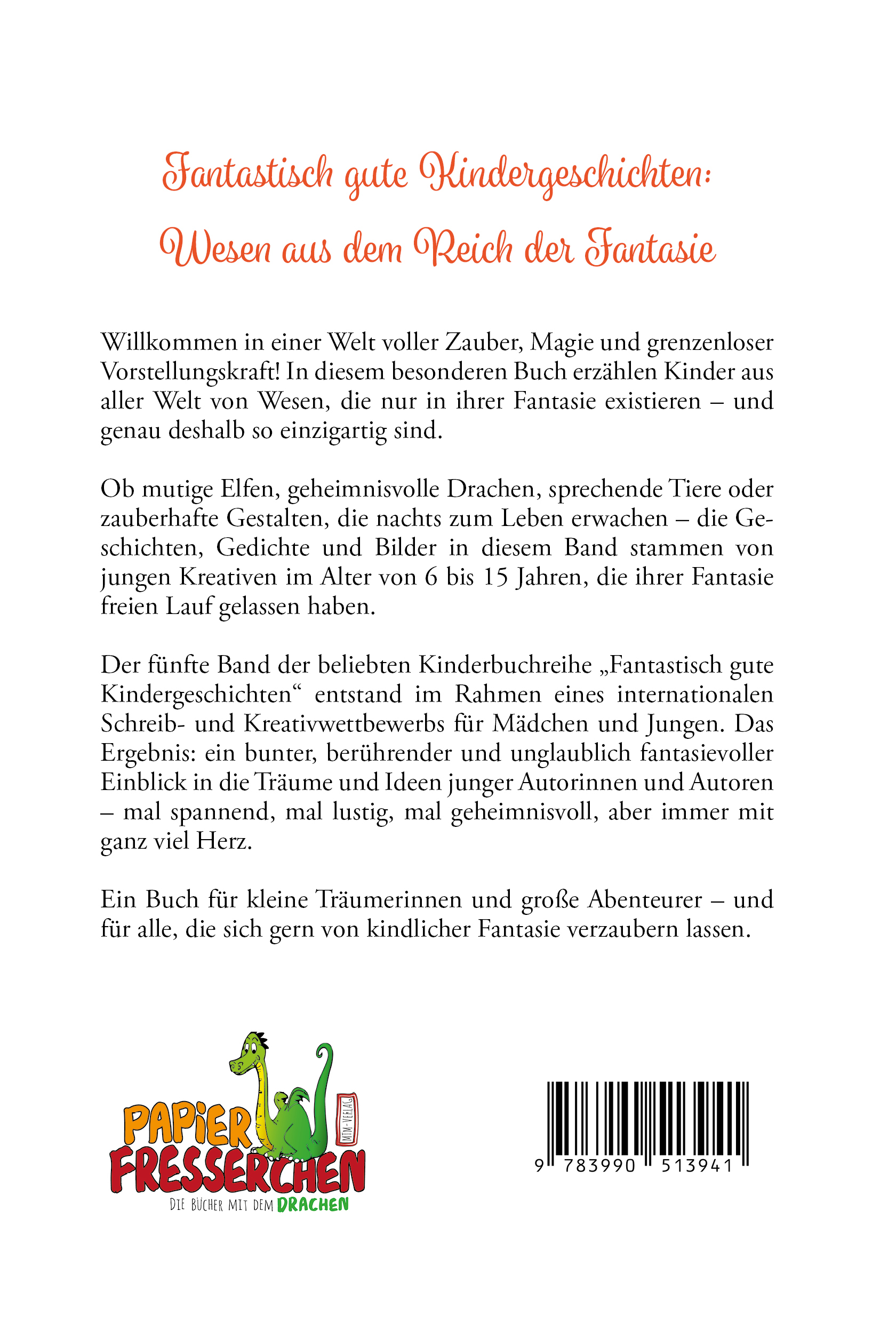 Ob mutige Elfen, geheimnisvolle Drachen, sprechende Tiere oder zauberhafte Gestalten, die nachts zum Leben erwachen – die Geschichten, Gedichte und Bilder in diesem Band stammen von jungen Kreativen im Alter von 6 bis 15 Jahren, die ihrer Fantasie freien Lauf gelassen haben.