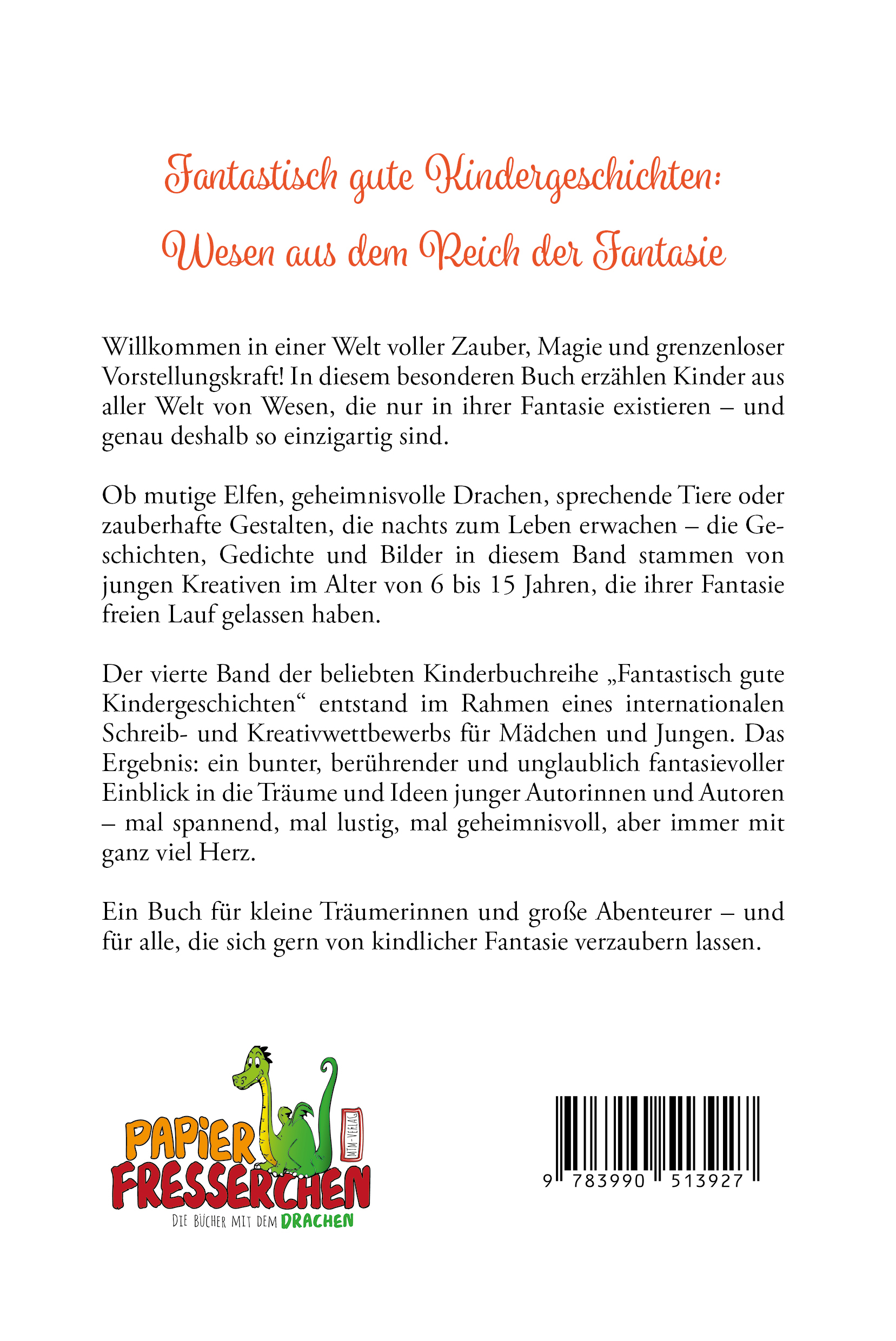 Der vierte Band der beliebten Kinderbuchreihe „Fantastisch gute Kindergeschichten“ entstand 2024/2025 im Rahmen eines internationalen Schreib- und Kreativwettbewerbs für Mädchen und Jungen. Das Ergebnis: ein bunter, berührender und unglaublich fantasievoller Einblick in die Träume und Ideen junger Autorinnen und Autoren – mal spannend, mal lustig, mal geheimnisvoll, aber immer mit ganz viel Herz.