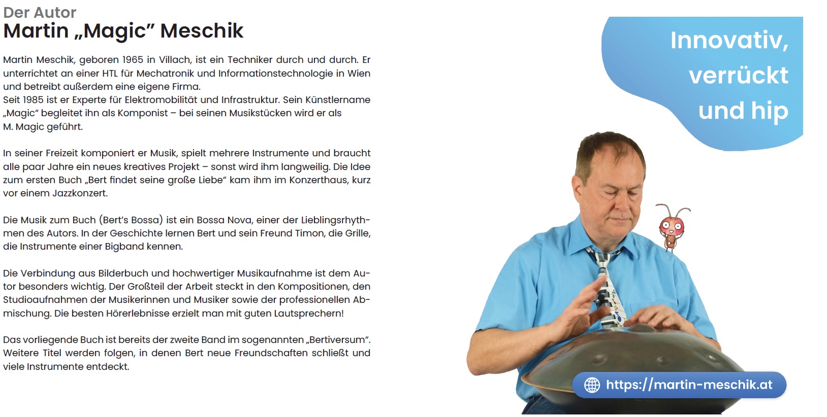 Dieses Abenteuer ist nicht nur visuell, sondern auch auditiv erlebbar: Viele Seiten enthalten QR-Codes, die zu professionell eingespielten Musikstücken, Texten und Geräuschen führen, die zu den Szenen passen, die Bert auf seiner musikalischen Reise erlebt.
