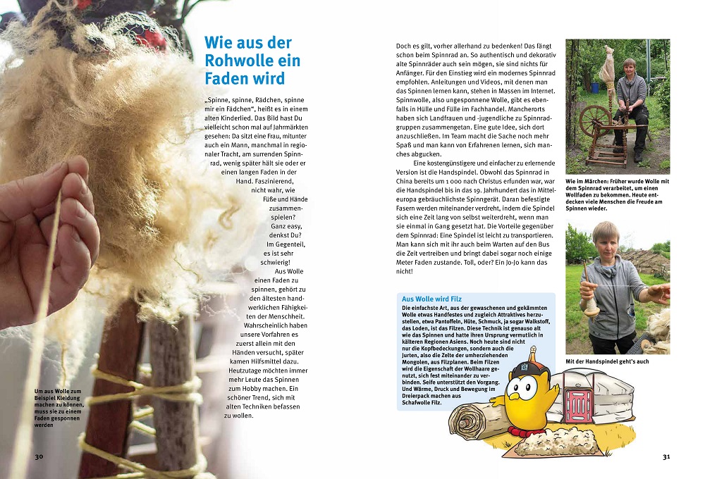 Schäfersprache, der Beruf des Schäfers/der Schäferin, die Wollgewinnung dargestellt, auf Hüte- und Herdenschutzhunde eingegangen, auch auf die u.U. gegebene Bedrohung durch Wölfe. Mit einem kurzen Exkurs zu Ziegen, Steinböcken und Gamsen. Und abschließendem Quiz. Zum Einstieg geeignet mit gelungenen Fotos und ansprechender Seitengestaltung, kindgerecht anschaulich geschrieben, nur die ausführliche Darstellung eines Hüte-Wettbewerbs und Informationen zur möglichen Schafhaltung für Einsteiger*innen erscheinen unverhältnismäßig. Breite Empfehlung, auch aufgrund weniger Alternativtitel speziell zu Schafen …. Auch für Schulbibliotheken.