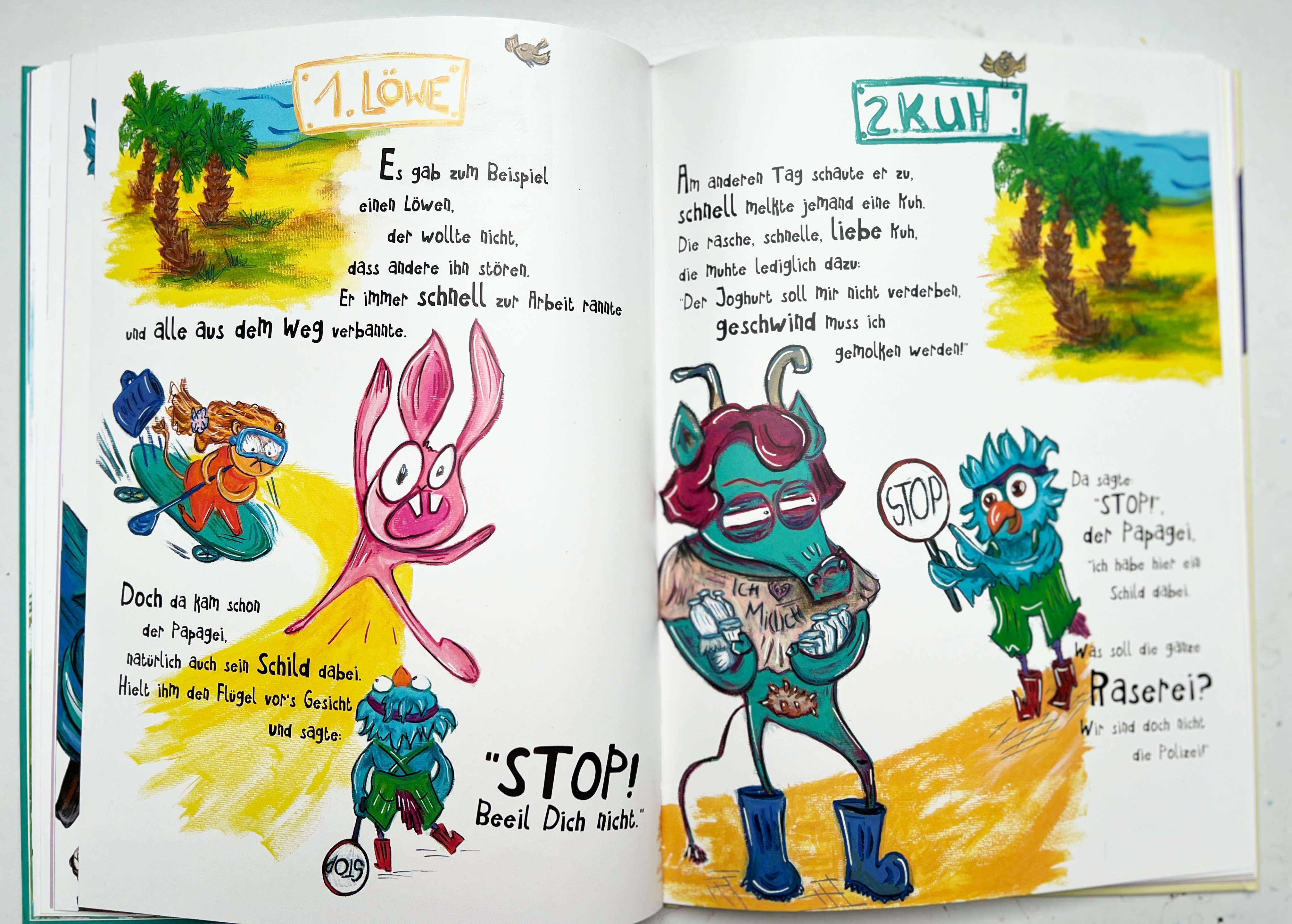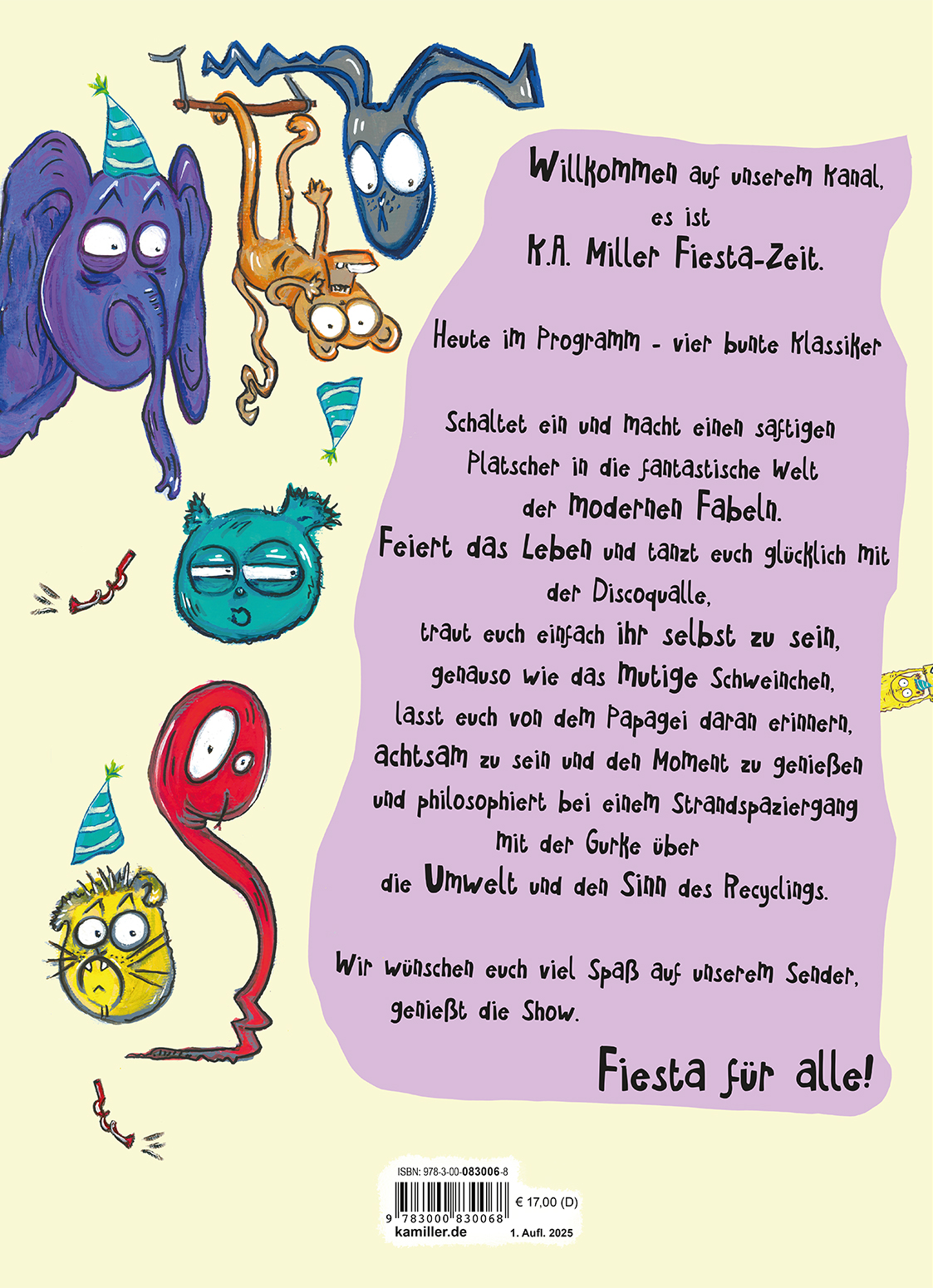 | Schlagworte | Achtsamkeit • Bilderbuch • Disco • Discoqualle • Entspannung • Fabel • Fiesta • Gurke • KAMiller • Kinderbuch • Meer • Papagei • Qualle • Queer • Recycling • Schweinchen • Selbstbestimmung • Stop • Tanzen • Tiere • Toleranz • Umwelt • witzig |