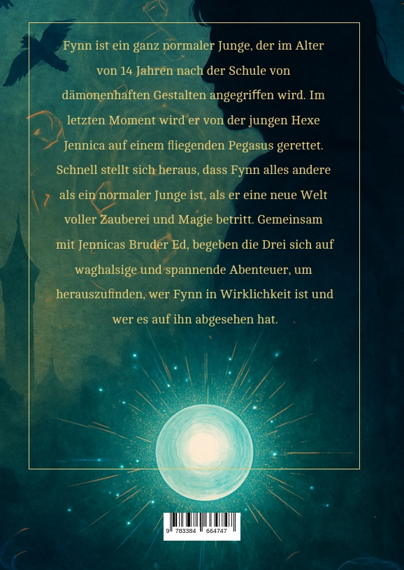 Fynn ist ein ganz normaler Junge, der im Alter von 14 Jahren nach der Schule vondämonenhaften Gestalten angegri en wird. Im letzten Moment wird er von der jungen HexeJennica auf einem iegenden Pegasus gerettet. Schnell stellt sich heraus, dass Fynn alles andere als ein normaler Junge ist, als er eine neue Welt voller Zauberei und Magie betritt. Gemeinsam mit Jennicas Bruder Ed, begeben die Drei sich auf waghalsige und spannendeAbenteuer, um herauszufinden, wer Fynn in Wirklichkeit ist und wer es auf ihn abgesehen hat.