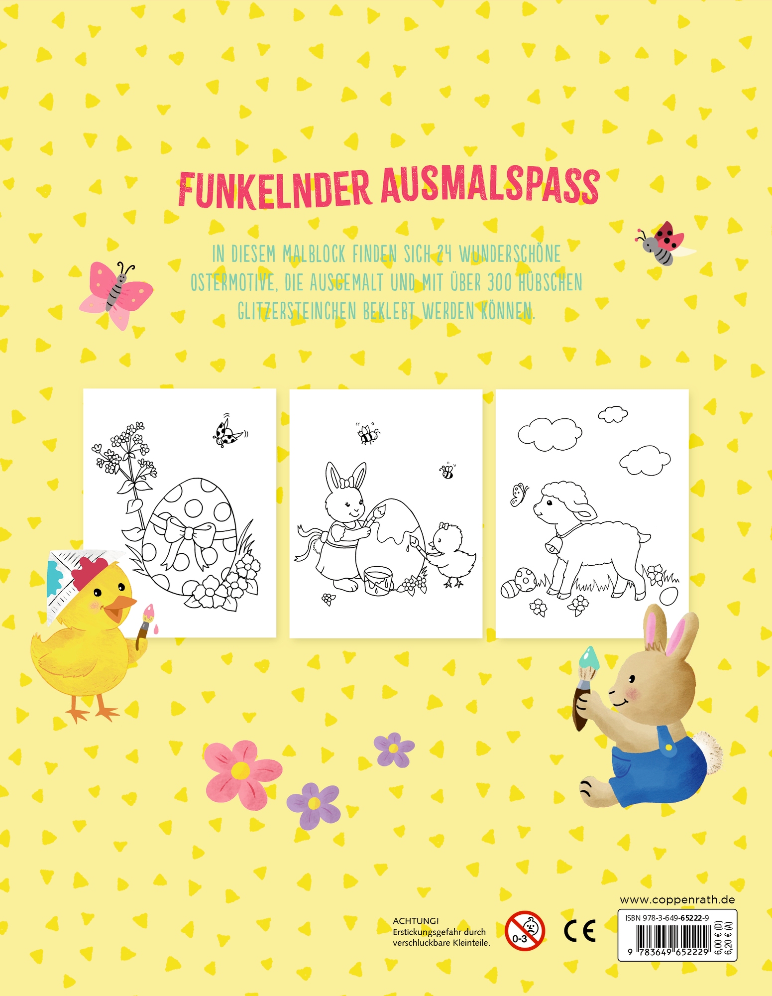 | Schlagworte | DIY Geschenk Ostern • Frühlingshafte Ausmalmotive • Glitzersteinchen-Aufkleber • Glitzersteine kleben • Glitzersticker Bastelspaß • Kreatives Ostergeschenk • Malblock Kinder Frühling • Osterbasteln für Kinder • Osterhasen und Küken ausmalen • ostern malbuch kinder |