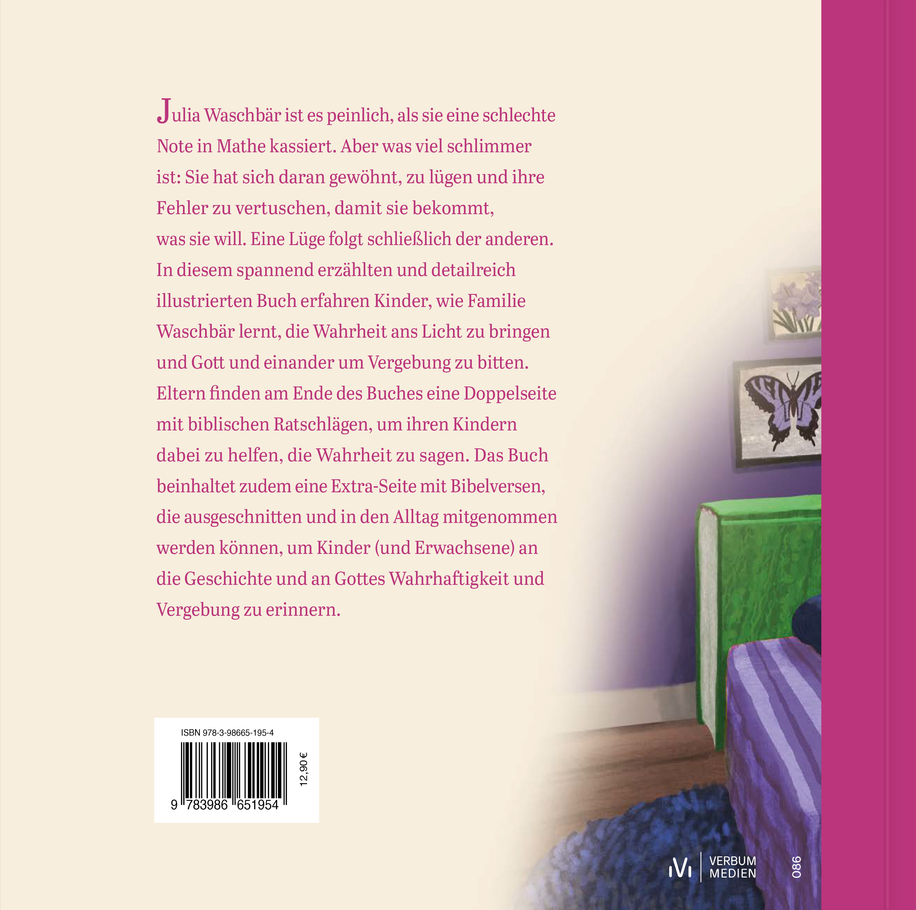 Julia Waschbär ist ihre schlechte Mathe-Note peinlich und sie fängt an, zu lügen. Eine Geschichte darüber, wie Julia lernt, die Wahrheit zu sagen und um Vergebung zu bitten.