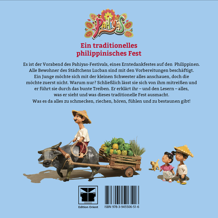 Es ist der Vorabend des Pahiyas-Festivals, alle Bewohner der philippinischen Stadt Lucban sind mit den Vorbereitungen für das Erntedankfest beschäftigt. Ein Junge möchte sich mit der kleinen Schwester alles anschauen, doch die möchte zuerst nicht. Warum nur? Schließlich lässt sie sich von ihm mitreißen und er führt sie durch das bunte Treiben. Er erklärt ihr - und den Lesern - alles, was er sieht und was dieses traditionelle Fest ausmacht. Ach, was es da alles zu schmecken, riechen, fühlen und zu bestaunen gibt!