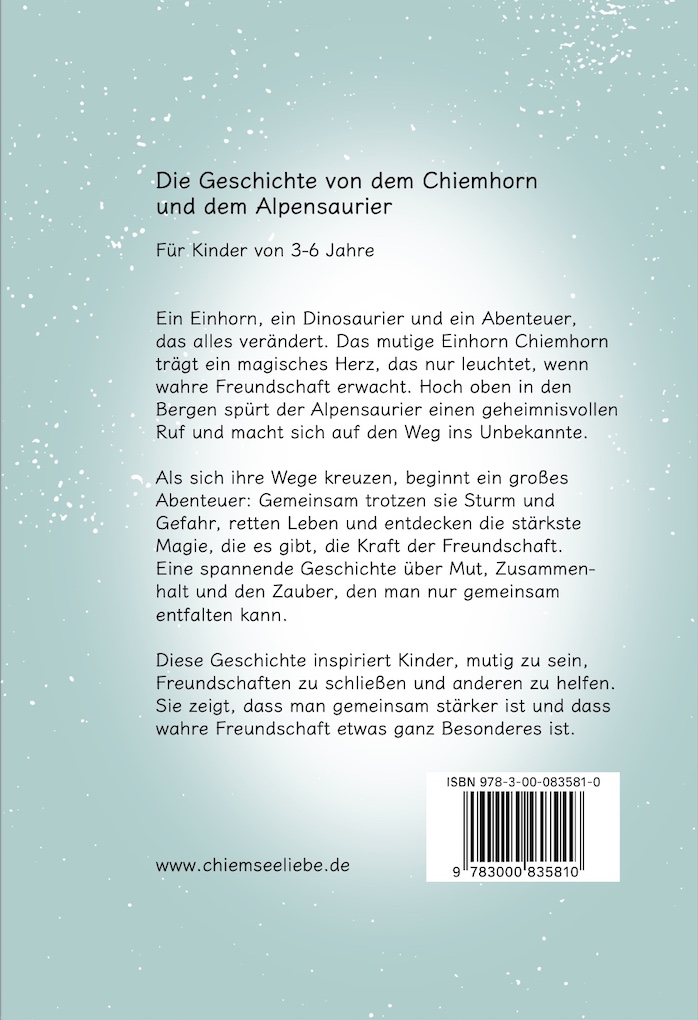 das alles verändert. Das mutige Einhorn Chiemhorn trägt ein magisches Herz, das nur leuchtet, wenn wahre Freundschaft erwacht. Hoch oben in den Bergen spürt der Alpensaurier einen geheimnisvollen Ruf und macht sich auf den Weg ins Unbekannte.