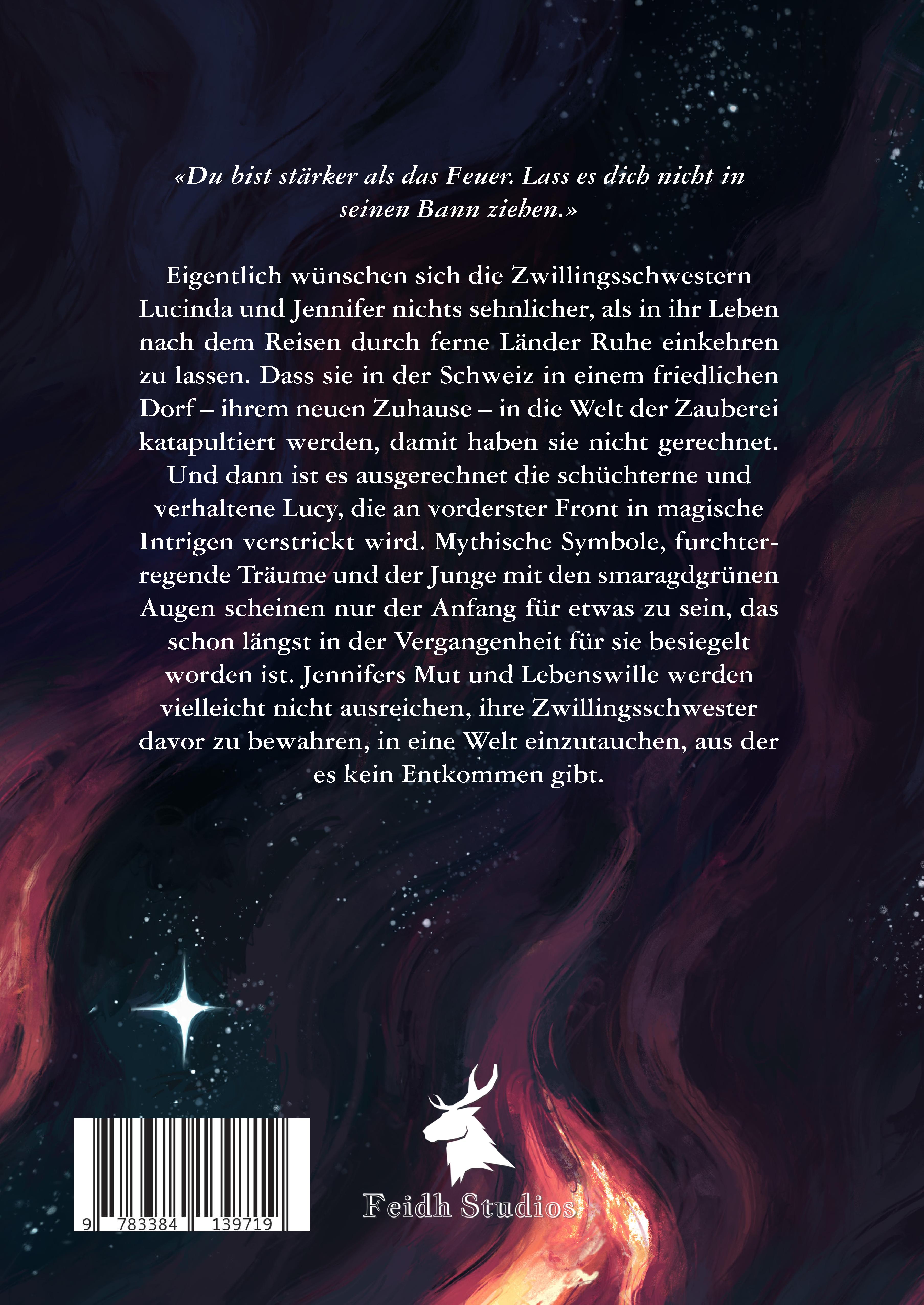 Du bist stärker als das Feuer. Lass es dich nicht in seinen Bann ziehen.Eigentlich wünschen sich die Zwillingsschwestern Lucinda und Jennifer nichts sehnlicher, als in ihr Leben nach dem Reisen durch ferne Länder Ruhe einkehren zu lassen. Dass sie in der Schweiz in einem friedlichen Dorf - ihrem neuen Zuhause - in die Welt der Zauberei katapultiert werden, damit haben sie nicht gerechnet. Und dann ist es ausgerechnet die schüchterne und verhaltene Lucy, die an vorderster Front in magische Intrigen verstrickt wird. Mythische Symbole, furchterregende Träume und der Junge mit den smaragdgrünen Augen scheinen nur der Anfang für etwas zu sein, das schon längst in der Vergangenheit für sie besiegelt worden ist. Jennifers Mut und Lebenswille werden vielleicht nicht ausreichen, ihre Zwillingsschwester davor zu bewahren, in eine Welt einzutauchen, aus der es kein Entkommen gibt.