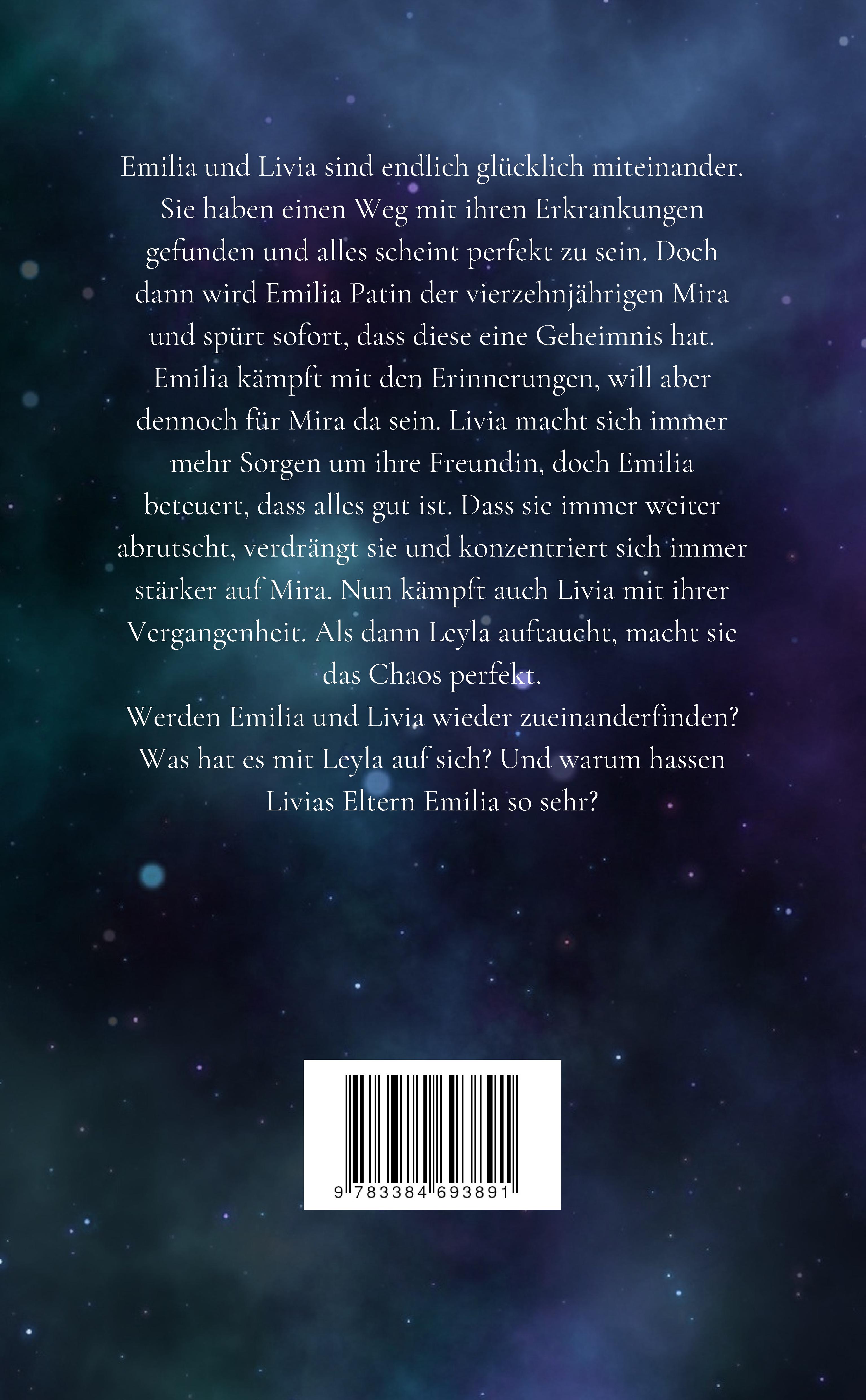 Emilia und Livia sind endlich glücklich miteinander. Sie haben einen Weg mit ihren Erkrankungen gefunden und alles scheint perfekt zu sein. Doch dann wird Emilia Patin der vierzehnjährigen Mira und spürt sofort, dass diese eine Geheimnis hat. Emilia kämpft mit den Erinnerungen, will aber dennoch für Mira da sein. Livia macht sich immer mehr Sorgen um ihre Freundin, doch Emilia beteuert, dass alles gut ist. Dass sie immer weiter abrutscht, verdrängt sie und konzentriert sich immer stärker auf Mira. Nun kämpft auch Livia mit ihrer Vergangenheit. Als dann Leyla auftaucht, macht sie das Chaos perfekt.Werden Emilia und Livia wieder zueinanderfinden? Was hat es mit Leyla auf sich? Und warum hassen Livias Eltern Emilia so sehr?