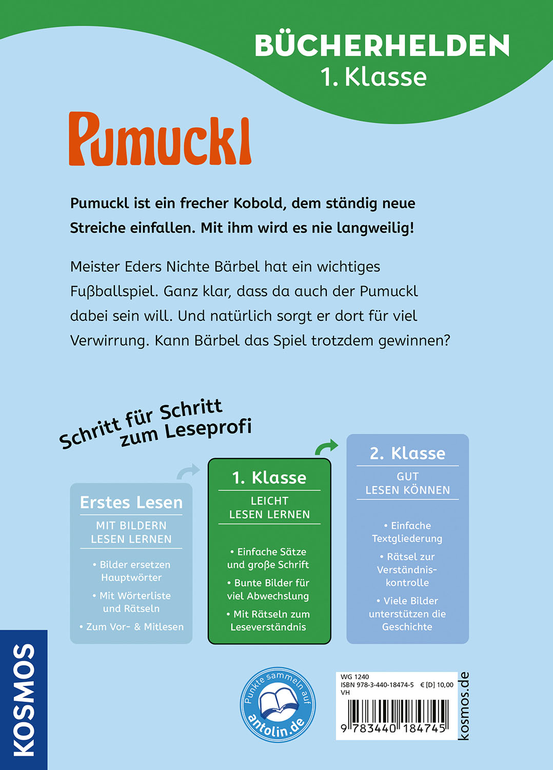 | Schlagworte | Abenteuer • Einschulung • Erste Klasse • Erstes Lesen • Fußball • Fußballplatz • Geschenk Einschulung • Grundschule • Kinderbuchrei • Kobold • Leseanfänger • Lesen lernen • Lesen üben • Magie • Meister Eder • Rätsel • Rätsel lösen • Reime • Schulkind • Schultüte • Tor |