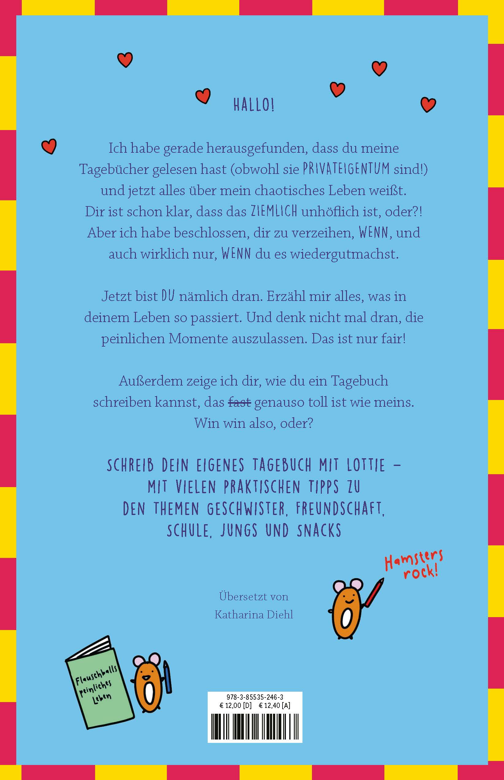Hi, ich bin's wieder, Lottie! Ich habe erfahren, dass du meine Tagebücher gelesen hast und jetzt ALLES über mein peinliches Leben weißt. Dir ist schon klar, dass ein Tagebuch PRIVATEIGENTUM ist?! Aber ich habe beschlossen, dir zu verzeihen, WENN, und auch wirklich nur WENN du es wieder gut machst. Also bist du jetzt dran. Erzähl mir alles, was in deinem Leben so passiert. Und denk nicht mal dran, die peinlichen Stellen auszulassen...