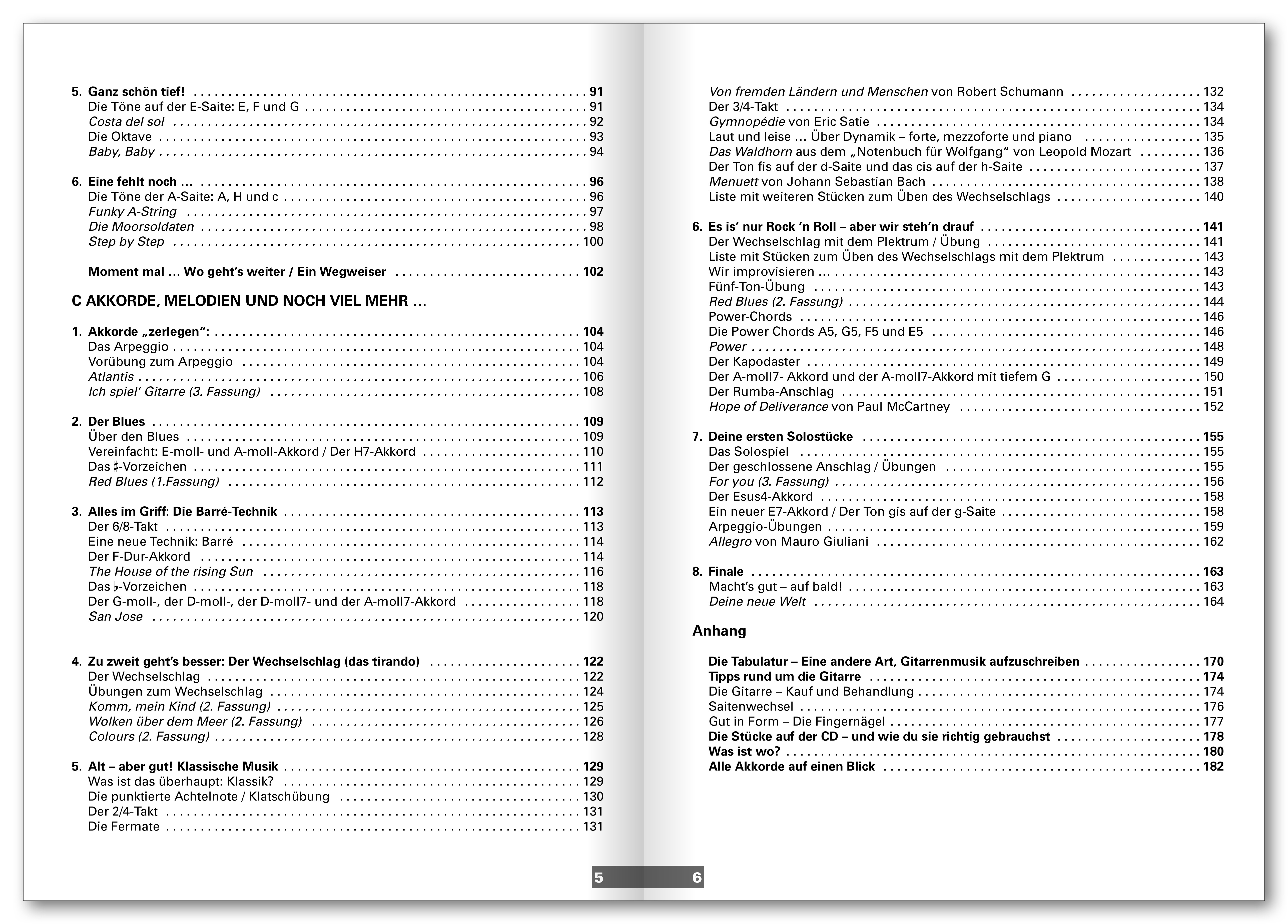 Eine Gitarrenschule, die dem Schüler von Anfang an alle musikalischen Welten offen hält und nicht schon frühzeitig in nur eine Richtung führt. Eine Gitarrenschule die dem Anfänger und Schüler mit Beispielen aus der Popmusik geläufiges Unterrichtsmaterial liefert und mit sorgfältig ausgewählten Beispielen den Zugang zur klassischen "ernsten" Musik ermöglicht. Liedbegleitung, Melodiespiel, erste solistische Stücke und eine einfache und verständliche Einführung in die Notenschrift und Musiklehre. Die vermittelte Spieltechnik hilft später in jeder Stilrichtung weiter. Für Anfänger und Fortgeschrittene!