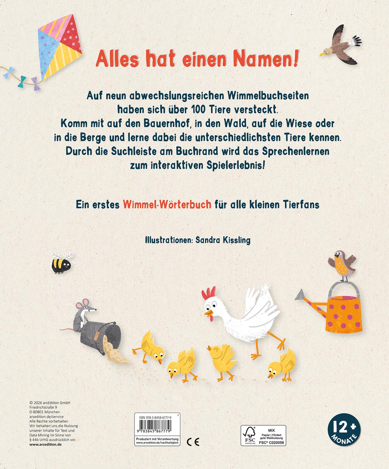 - Selbst aktiv werden: Das kunterbunte Wimmelbuch lädt Kinder ab 12 Monaten dazu ein, über 100 Tiere zu suchen und zu benennen. So wird das Buch zum allerersten Lexikon!