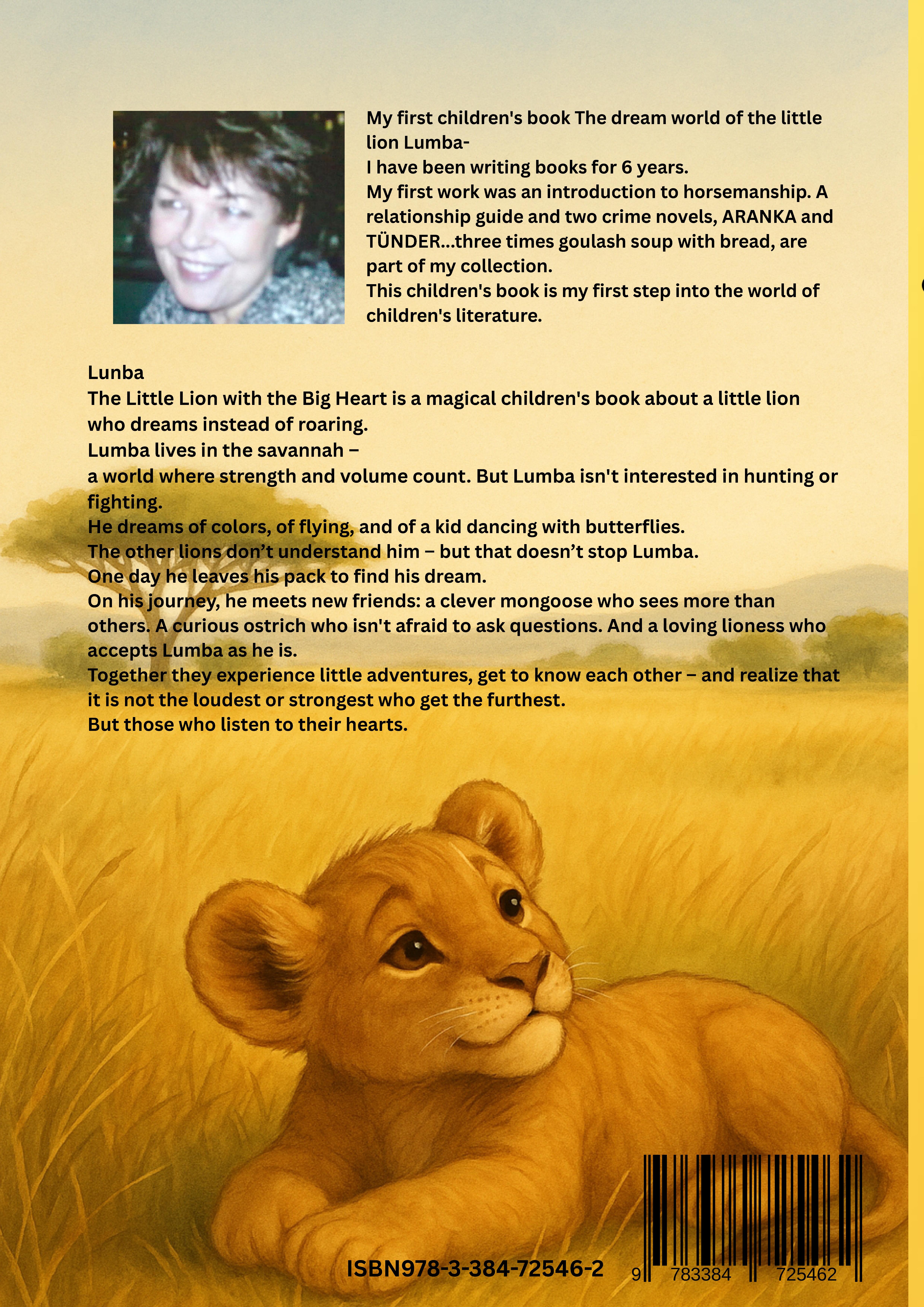 The dream world the little lion Lumba Episode 2 Dreams and DiscoveriesLumba is a little lion with big dreams. In his nightly adventures, he meets the wise owl Herta, the brave kid Sabi, a baby elephant, and many other animals he's never seen before. Together they discover many worlds, experiencing funny, exciting, and sometimes very thoughtful moments.The day was humid, and Lumba sighed heavily."It's so hot, even my hair is sticky," he complained.Sabi snorted: "I dream of cold water." Lumba closed his eyes - just briefly.And suddenly he heard a rushing sound. Loud, deep, wild.A waterfall thundered down before them, silver and mighty.Lumba was amazed. "Wow... where are we?" Sabi shivered slightly. "Do you hear that? There's something behind the water." They approached, the water spraying coldly on their fur. Behind the waterfall was a dark cave. The dream was like real life!Lumba hesitated. "Should we go in there?" Sabi nodded bravely. "You first!" It was quiet inside. Drops sounded like drums.A shimmer flashed-golden vines hung from the ceiling. In the center sat a giant, old frog with glowing eyes."Those who show courage may move on," he said deeply.Lumba swallowed. His heart was pounding wildly.Then he stepped forward - his paws trembled, but he stood still.The frog smiled. "You're braver than you think." Suddenly, light flickered-the cave became as colorful as a rainbow.Lumba laughed, Sabi jumped in circles.When they lay back in the grass, everything was quiet.Only the echo of the waterfall still roared in her ears