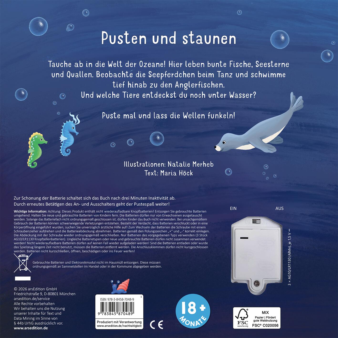 Das interaktive Kleinkindbuch zum Thema Meer bietet magischen Pustespaß, der kleine Augen funkeln lässt. Durch das Pusten auf den im Buch integrierten Sensor beginnen auf jeder Seite 4 LED-Lichter zu leuchten. Spielerisch wird so die Mundmotorik und Konzentration trainiert. Ein zauberhafter Buchspaß mit atmosphärischen Illustrationen für Kleinkinder ab 18 Monaten.