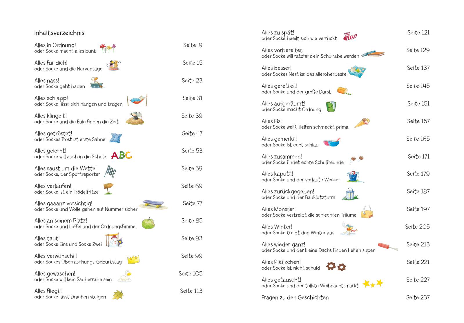 So viel kleiner Rabe Socke gab's noch nie in einem Buch! Hier erleben Kinder die beliebtesten Abenteuer von Socke und seinen Freunden - mal lustig, mal nachdenklich, mal frech, immer voller Herz. Die Geschichten greifen Themen auf, die Kindergartenkinder bewegen: Angsthaben und Mutigsein, Streiten und Versöhnen, Trödeln, Teilen, Geheimnisse und das große Abenteuer Freundschaft.