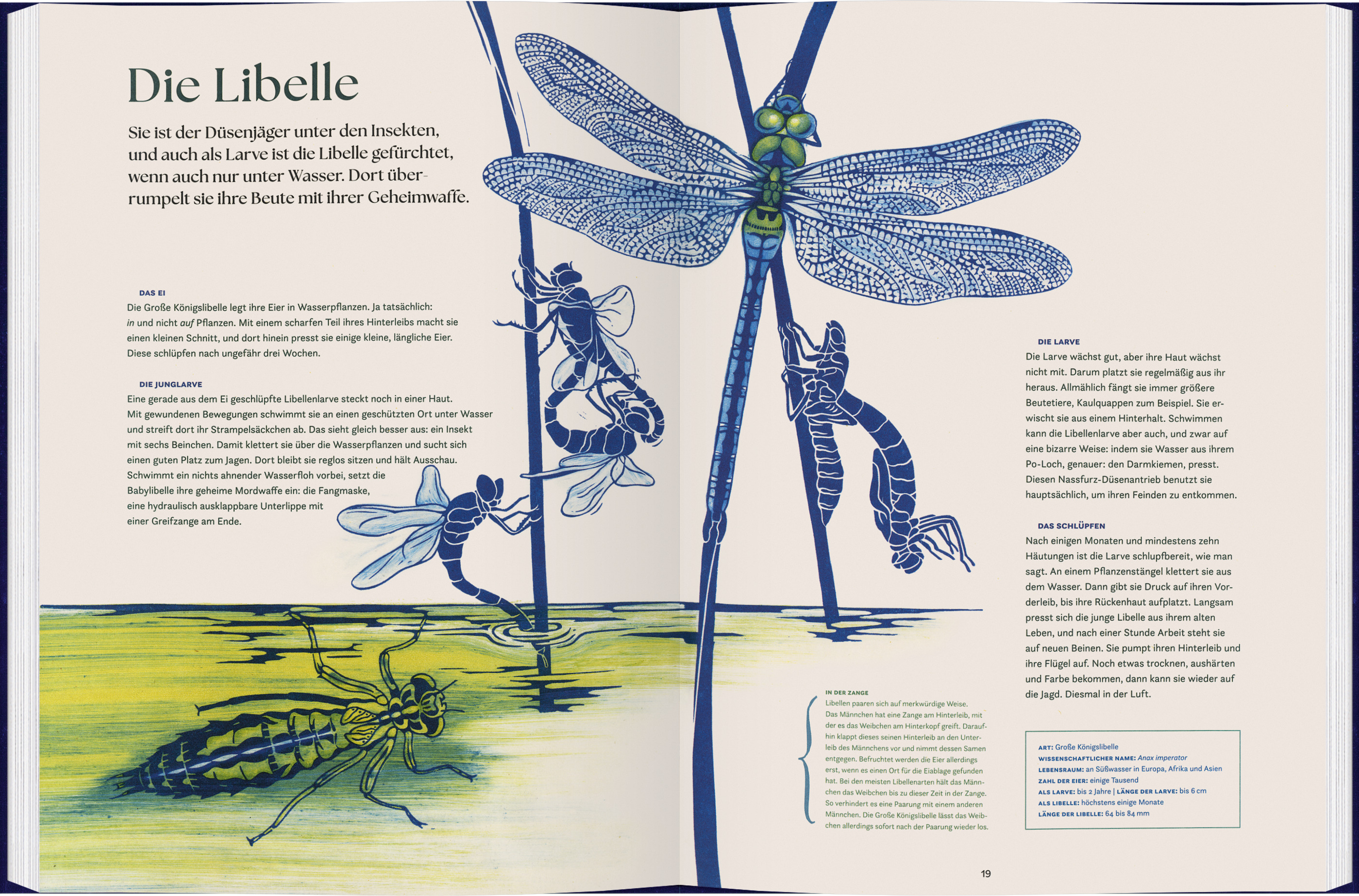 Das Tierreich ist viel reicher, als man denkt! Zu jeder Schmetterlingsart gehören vier oder fünf Raupenstadien, die alle unterschiedlich sind, und dazu noch eine völlig anders aussehende Puppe. Auch Käfer, Krabben, Frösche und Vögel verändern sich im Lauf ihres Lebens. Ein nahezu magischer Prozess, der Metamorphose genannt wird.In diesem Buch wird verraten, wie aus einem winzigen Ei ein wunderschöner Seestern oder aus einem kahlen Küken ein bunter Papagei wird. Die meisterhaften Illustrationen lassen uns die unterschiedlichsten Verwandlungen von Tieren aller Art miterleben, eine noch wundersamer als die andere. Der Reichtum in der Welt der Metamorphose ist geradezu unerschöpflich! Opulent und prächtig ins Bild gesetzt von Merlijne Marell.