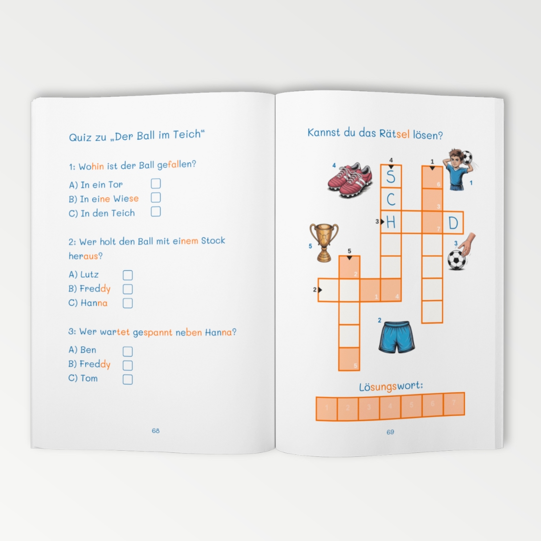 Lesen lernen für echte Fußballfans!Dieses spannende Erstlesebuch ist perfekt für Kinder, die Fußball lieben und gerade das Lesen lernen. Mit kurzen, aufregenden Fußballgeschichten, Steckbriefen von Fußballstars sowie Rätseln und Ausmalbildern wird das Lesenlernen hier zum echten Spielspaß.Die Texte sind in bunter Silbenschrift gestaltet, was das Erkennen und Lesen einzelner Wörter erleichtert und schnelle Erfolgserlebnisse ermöglicht. Große Schrift, kurze Sätze und ein übersichtliches Layout unterstützen Leseanfänger optimal - ideal für Kinder der 1. Klasse.Die vielfältigen Inhalte sorgen für Abwechslung: Von spannenden Spielberichten über witzige Trainingserlebnisse bis zu kniffligen Fußballrätseln entdecken Kinder immer wieder Neues. So bleibt die Motivation hoch, und der Spaß am Lesen wächst mit jeder Seite.Ob als Geschenk zur Einschulung, für die ersten Leseübungen zu Hause oder einfach als Mitbringsel für kleine Fußballbegeisterte - dieses pädagogisch wertvolle Erstlesebuch verbindet Lernen und Leidenschaft auf unterhaltsame Weise.
