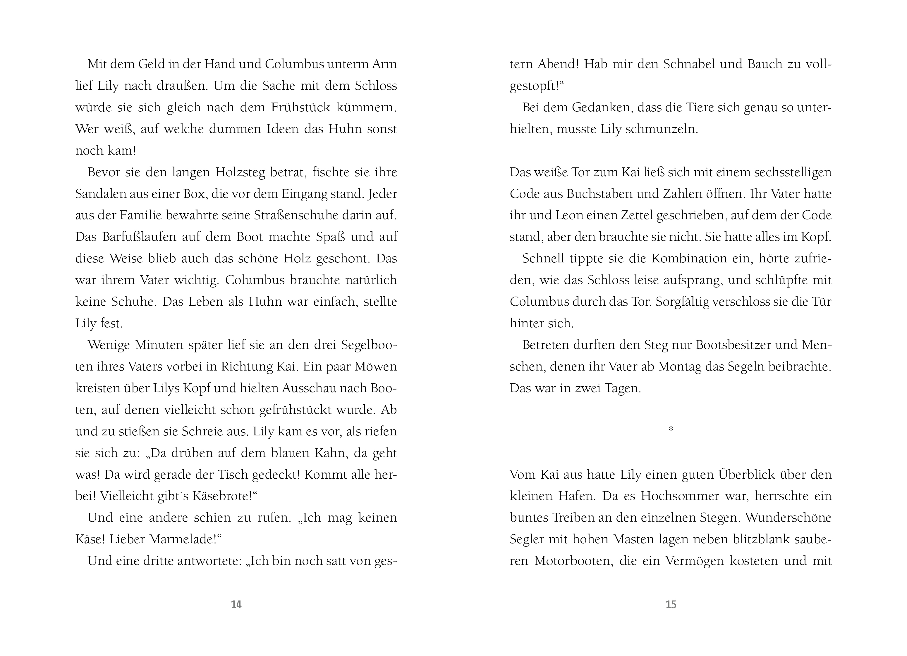 | Schlagworte | ab 7 Jahre • ab 9 • Abenteuer • Allein-sein • Familie • Freunde finden • Freundschaft • für Enkel-in • für tochter • Geburtstags-Geschenk • Hausboot • Huhn • Kinder-Buch • Kinderbuch ab 8 • Kinderbuch mit Hühnern • Konflikte Familie • Mädchen • neue Umgebung • See • Segelschule • Sommerbuch Kinder • Sommer-Ferien • Umzug |