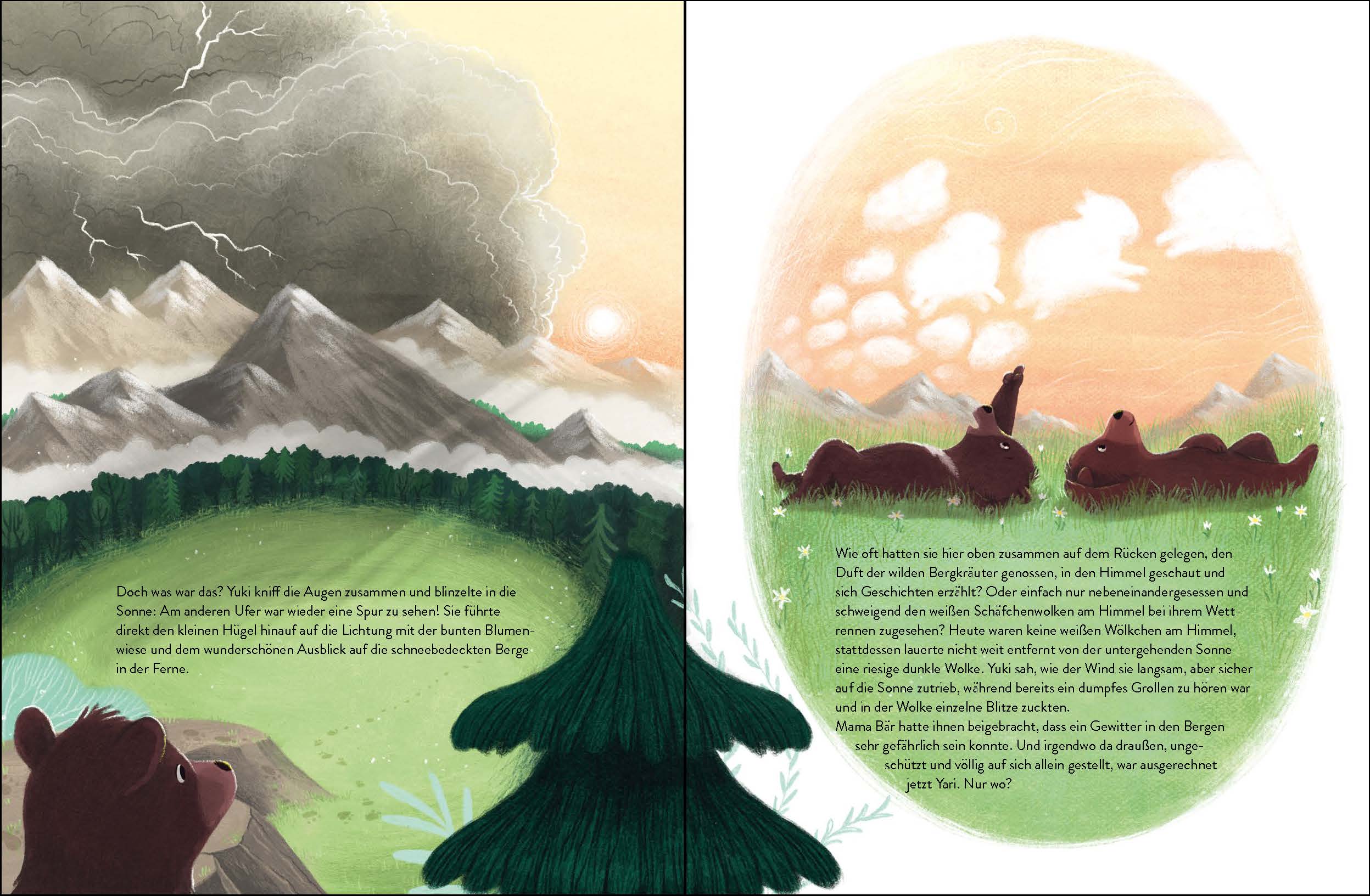 Die beiden Bärenkinder Yuki und Yari sind absolut unzertrennlich. Gemeinsam erkunden sie den Wald, klettern auf Bäume oder fangen Fische im Fluss. Doch eines Tages streiten sie sich um eine Honigwabe, und die beiden wünschen den jeweils anderen am liebsten ganz weit weg. Nach einer einsamen Nacht möchte Yuki sich am nächsten Morgen entschuldigen. Doch Yari ist verschwunden! Yuki macht sich direkt auf die Suche und kommt dabei an all ihren Lieblingsplätzen vorbei und erinnert sich: Zu zweit war es hier immer viel schöner ... Doch was ist das? Sind das Fußspuren? Ob die wohl von Yari sind?