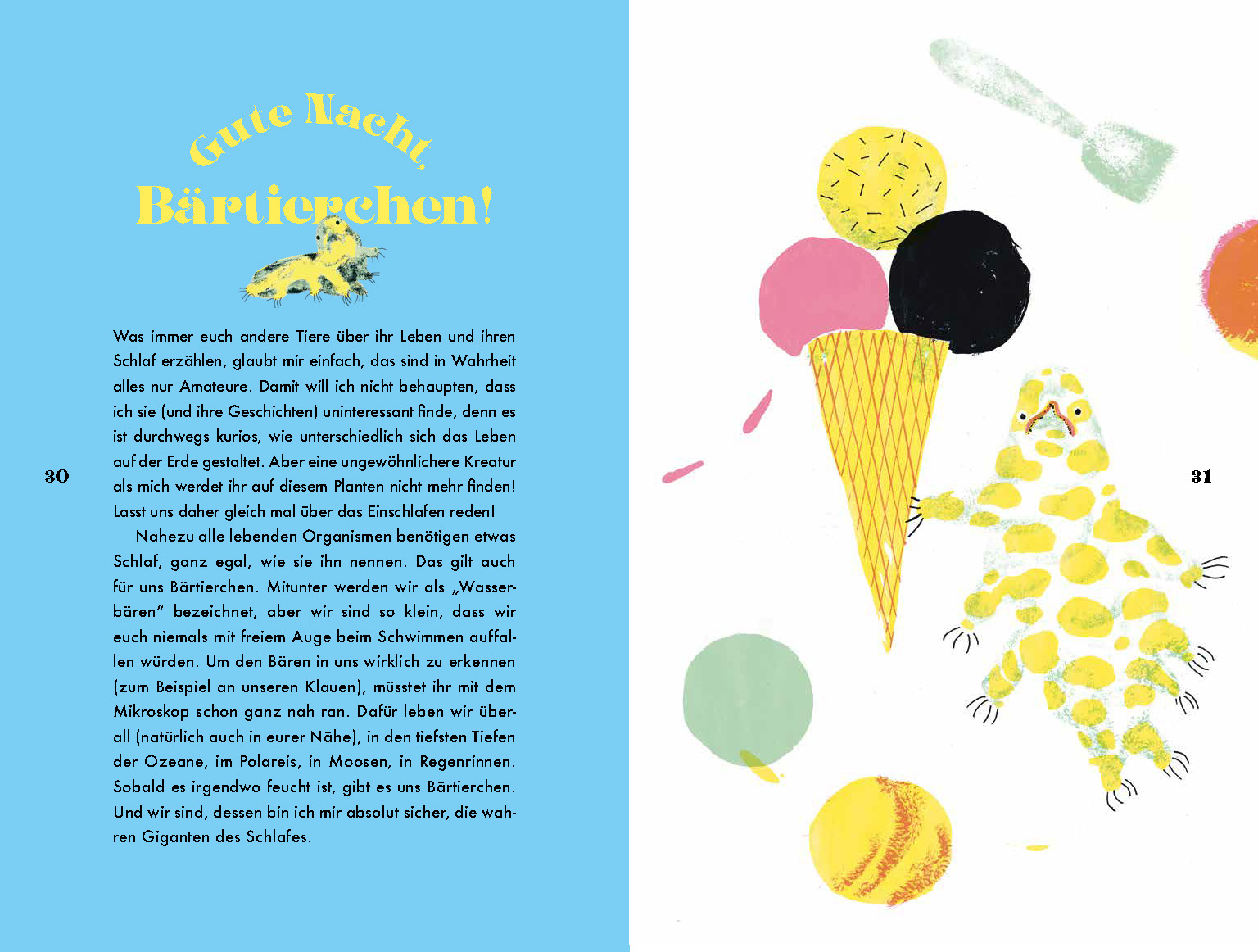 20 Tiere - von Erdmännchen bis Grizzlybär - erzählen von ihren Träumen. Dabei erfährt man so einiges über ihre eigenwilligen Lebens- und Schlafgewohnheiten.
