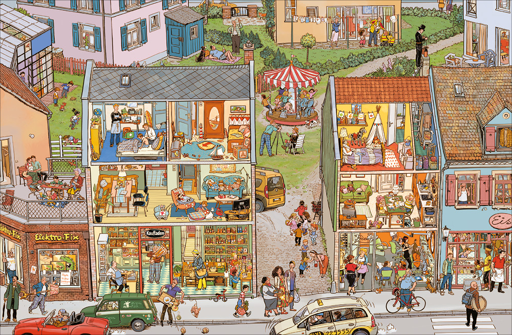 Seit 15 Jahren faszinieren Doro Göbel und Peter Knorr mit ihren virtuos komponierten Wimmelbüchern ganze Familien. Die Alltagsgeschichten der beliebten Charaktere lassen sich von Seite zu Seite verfolgen und bieten durch ihren fröhlichen Detailreichtum immer Neues, das sich entdecken lässt. Die limitierte, gebundene Sonderedition enthält folgende Titel: „Hier wird gebaut!“, „Unser Zuhause“ und „Auf zum Markt“.