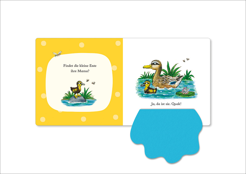 Findet die kleine Ente ihre Mama? Und das Kätzchen? Miau! Und das Lämmchen? Na klar, alle kleinen Tiere finden ihre Mama.