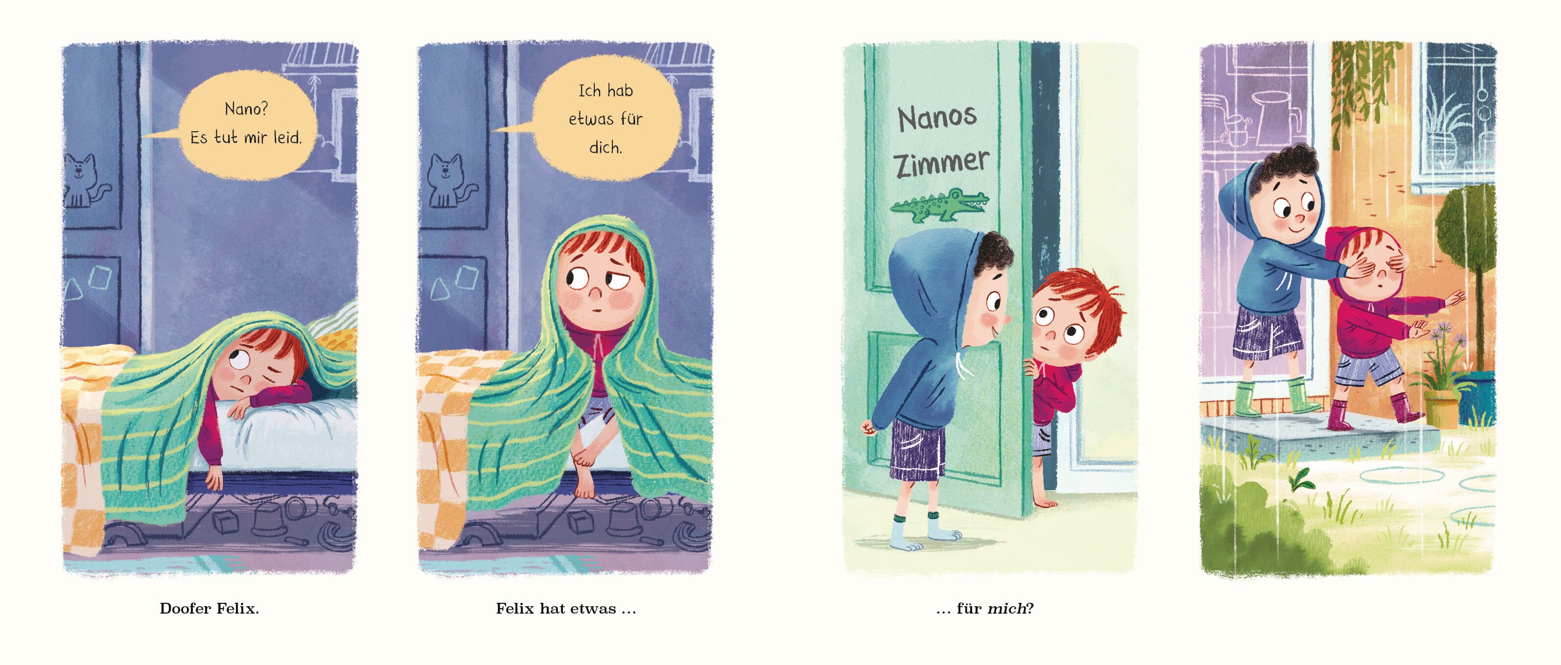 Nano hat seinen großen Bruder Felix ganz doll lieb. Und Nano weiß, dass Felix ihn auch lieb hat - meistens jedenfalls. Doch was tut man, wenn der allertollste große Bruder der Welt einfach nur seine Ruhe haben will? Na, alleine spielen, überhaupt gar kein Problem! Oder etwa doch?!Ein warmherziges Bilderbuch über kleine Konflikte und große Geschwisterliebe für Kinder ab 4 Jahren